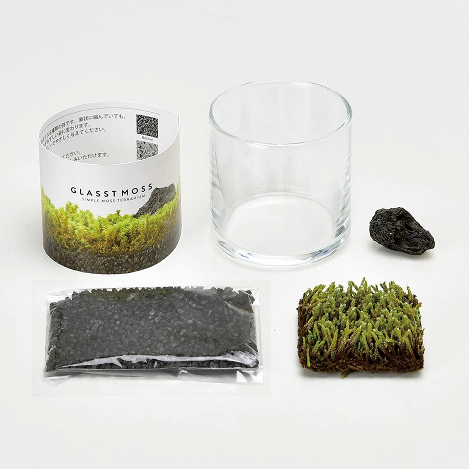ガラス容器・黒砂・苔・仕上げの溶岩石もすぐに使える基本のセット