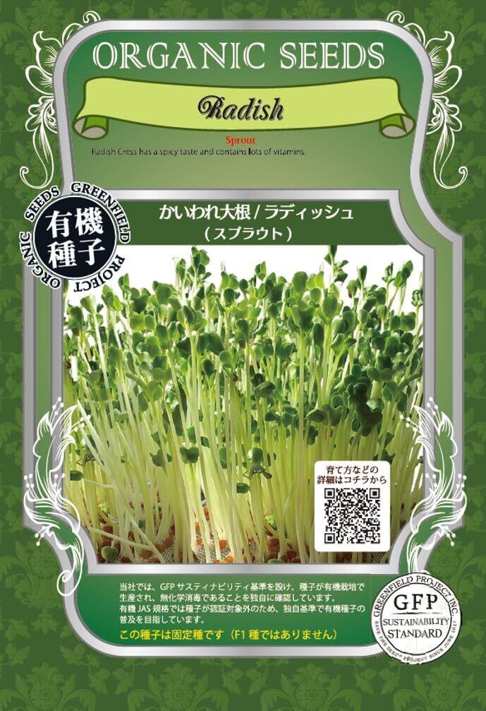 グリーンフィールドプロジェクト【有機種子・固定種】かいわれ大根/ラディッシュ (スプラウト) A016