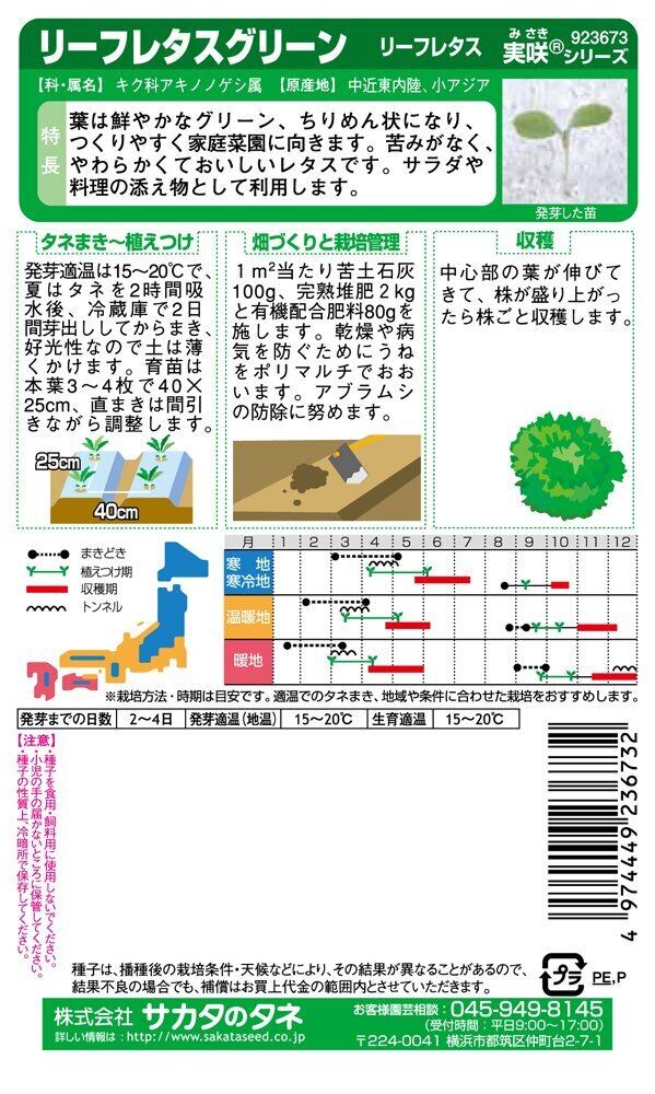 サカタのタネ 実咲野菜3673 リーフレタスグリーン リーフレタス 00923673