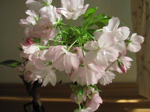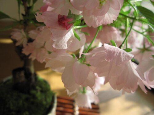 母の日ギフト5月にサクラのお花見を 八重桜 旭山桜盆栽 咲いたときはリビング お花見 桜盆栽 綺麗な八重のピンクのサクラです