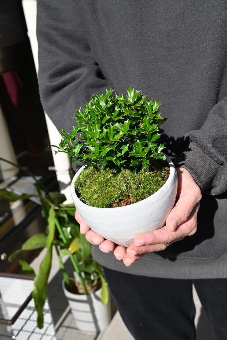 姫柊鉢植え ミニ盆栽 姫ヒイラギは、奄美地方が原産のモチノキ科の植物です。 幼木の葉がヒイラギに似ていて、「魔よけ」になると言われる縁起のよい植物です。 西洋では「家庭の幸せ」という花言葉で親しまれているそうです。