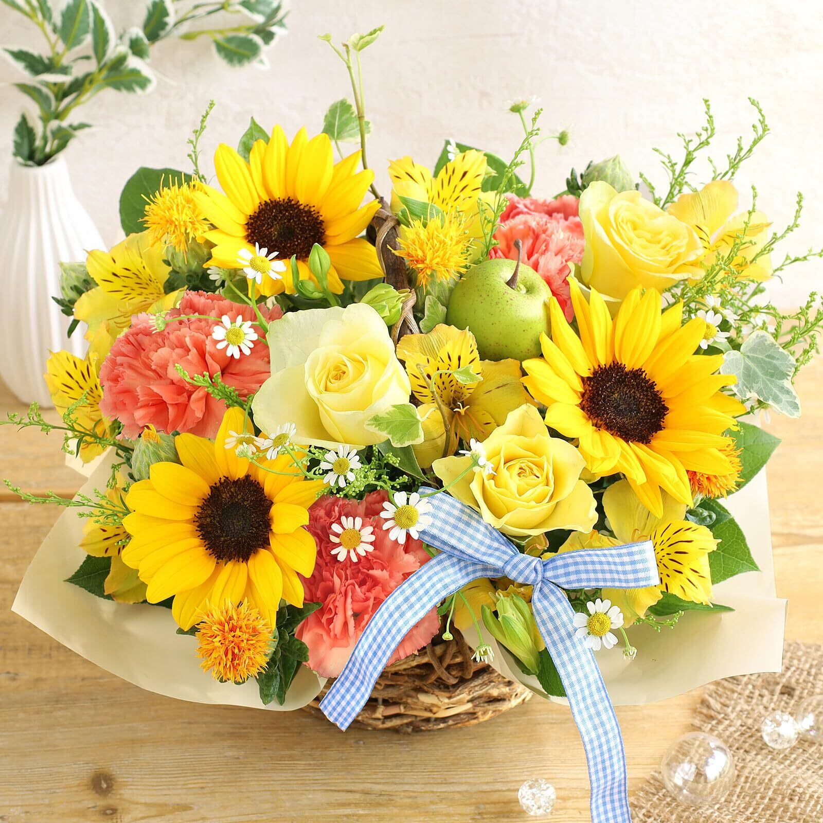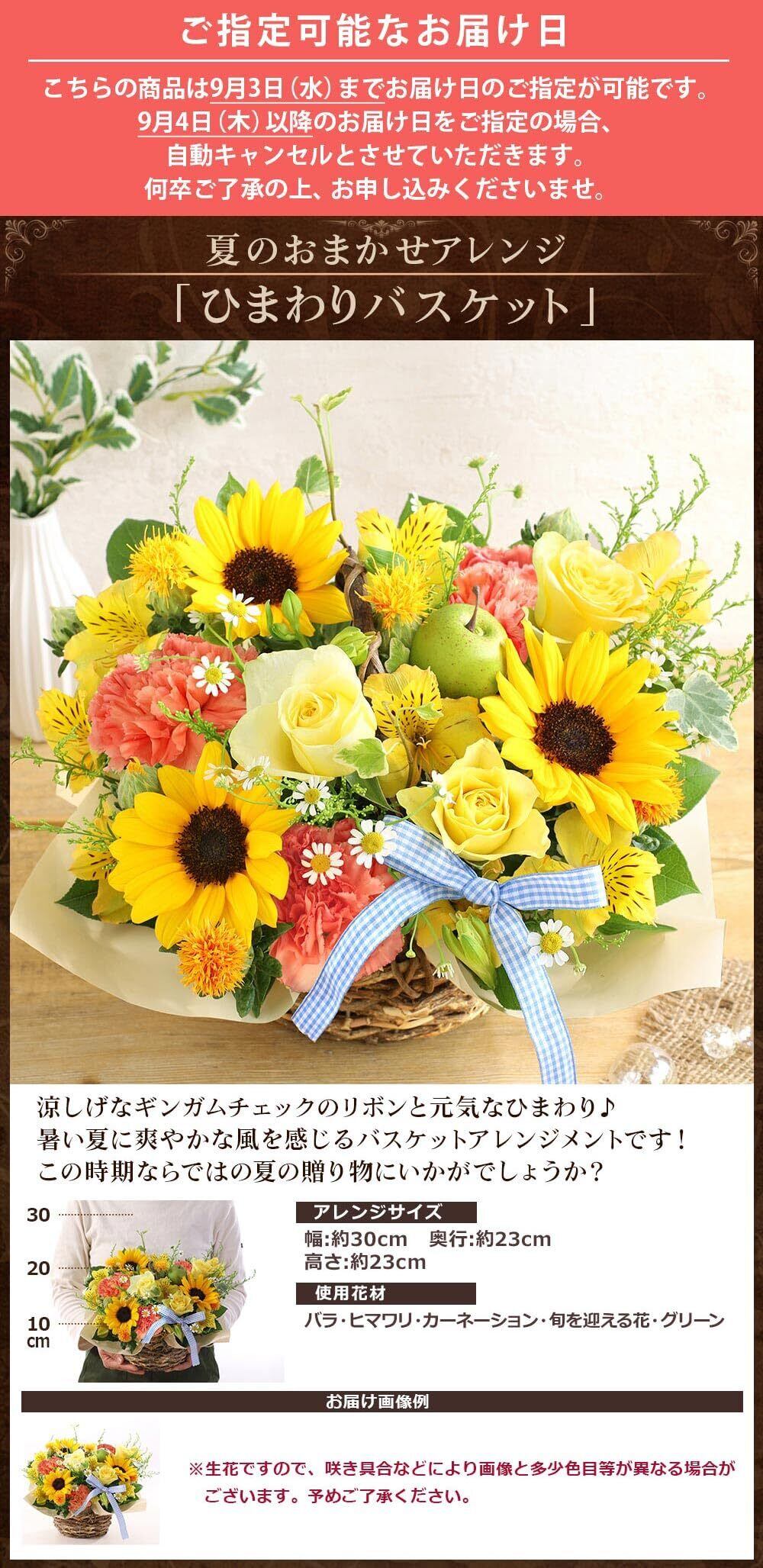 花 誕生日 プレゼント 夏のおまかせアレンジ ひまわりバスケット ギフト 記念日 お祝い 生花 女性