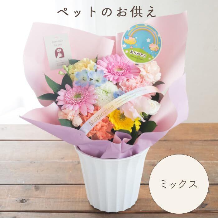 フラワーキッチン ペット お供え 花 【ピック付き ペットお供え「月虹」 ミックス 】アレンジメント【ペット専用】お悔やみ お供え花 仏花 命日 FKAA