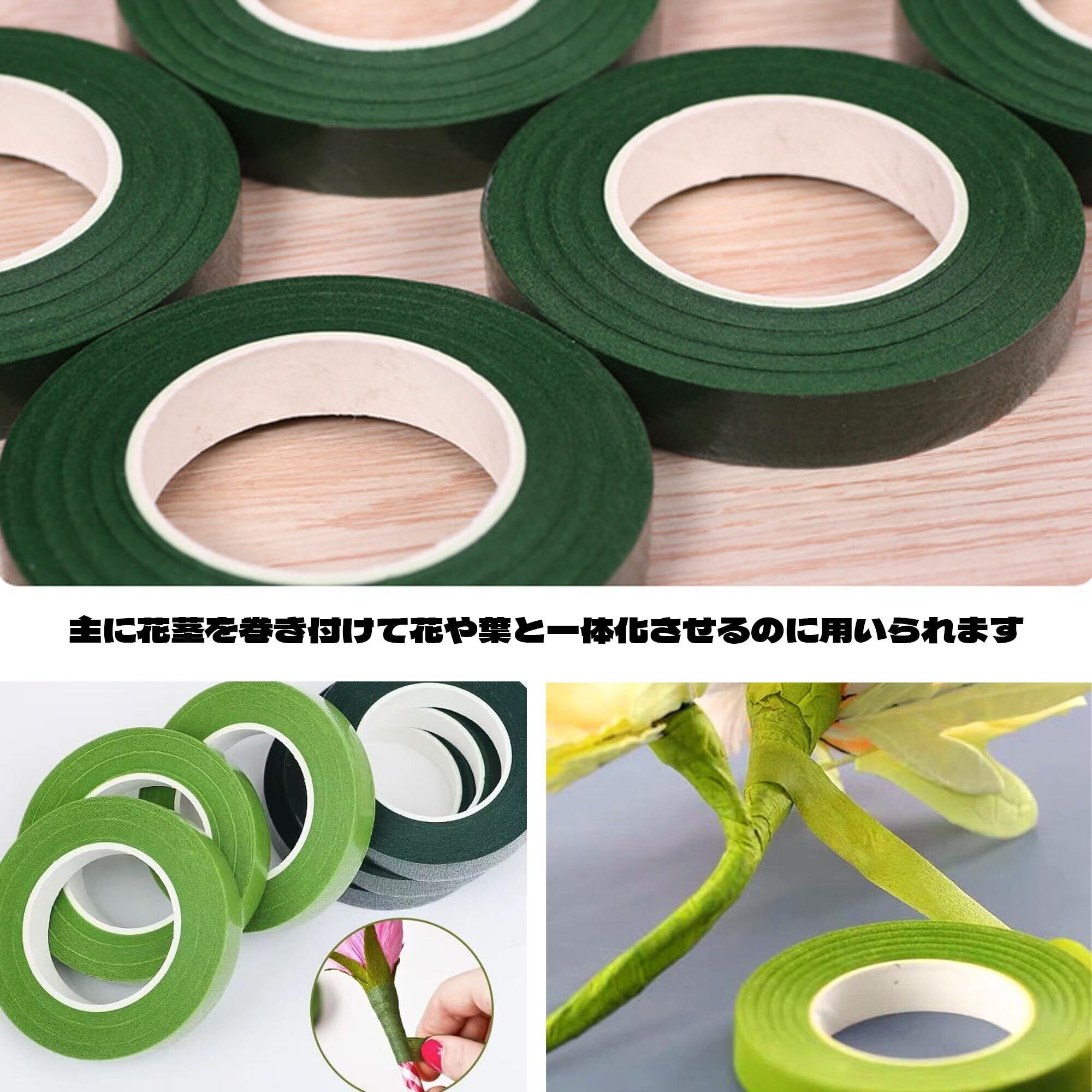 BOJIDO フローラテープ 1巻入 幅約12mm 長さ約28m 造花テープ フラワーテープ フラワーアレンジメントキット フローラルテープ ブーケ 花束の茎の包装 花 フラワーアレンジメントキット アクセサリー DIY 手芸材料(ダークグリーン)