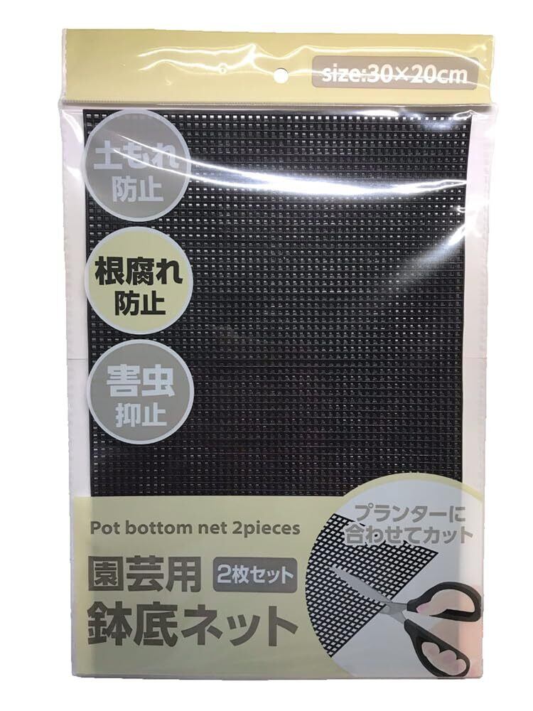 園芸用鉢底ネット2枚セット。植木鉢などの土もれを防止!根腐れや害虫の侵入を抑える!プラスチック製なので腐らない!【使い方】1.ハサミやカッターなどで、プランターや植木鉢の底穴より少し大きめにカットします。2.切った鉢底ネットを底穴の上にのせ土を盛ります。