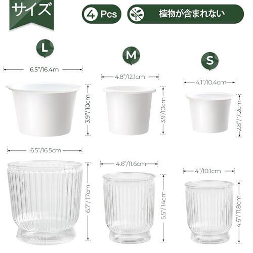 「サイズ」4点セット;植木鉢のインナーポット:12.1×10CM(直径×高さ)外付けの植木鉢:11.6×14CM(直径×高さ);ご注意: 飾りの植物は含まれませんので、ご了承ください。