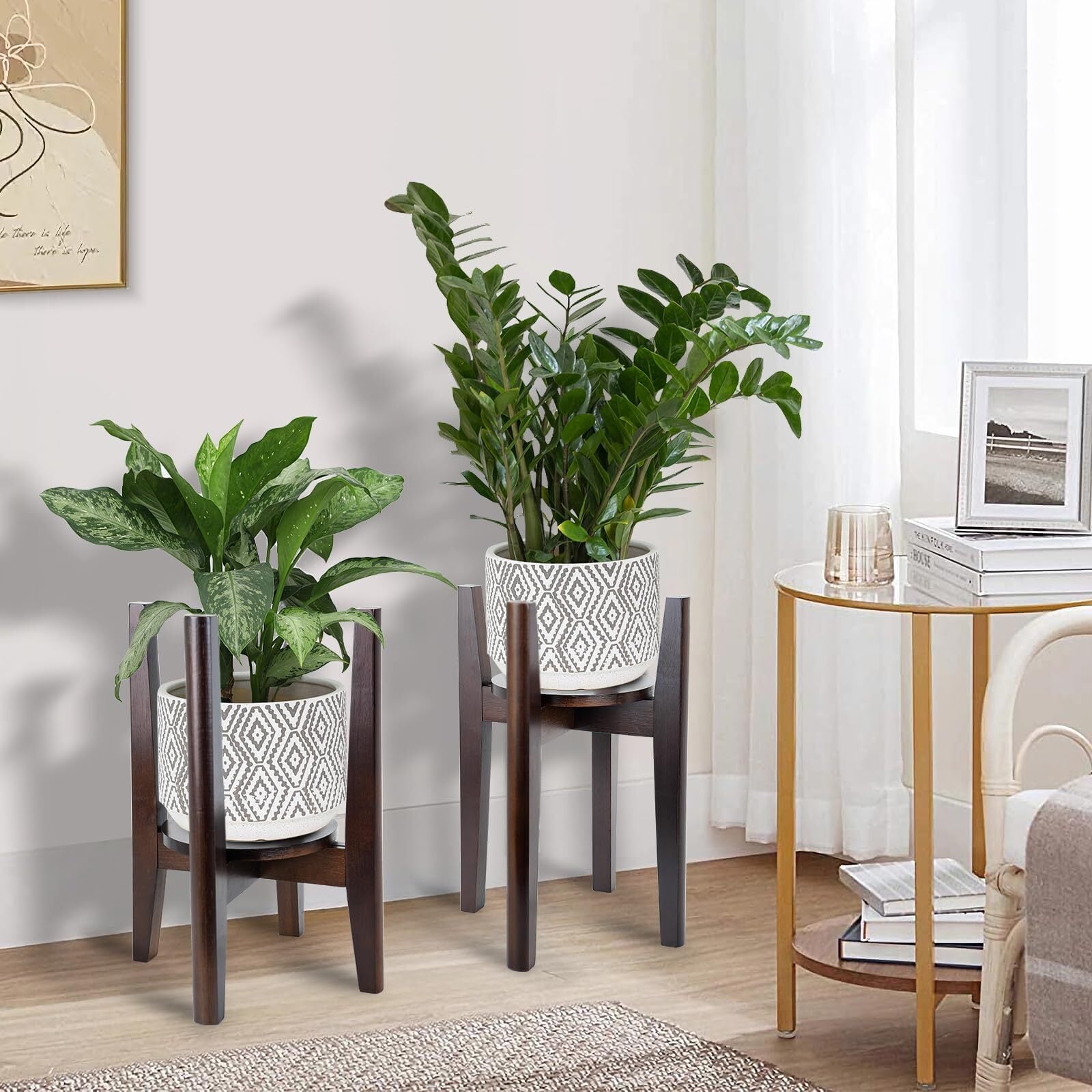 最新デザイン: 天然竹製の真ん中世紀 フラワースタンドはお花や観葉植物を飾れるだけではなく、床やテーブルが鉢との直接接触を防ぎ、保護することもできます。「K」字型の脚のデザインのシンプルでコンパクトなデザインはいろんな植物によくマッチし、屋内屋外のどこでも洗練された雰囲気を演出できます