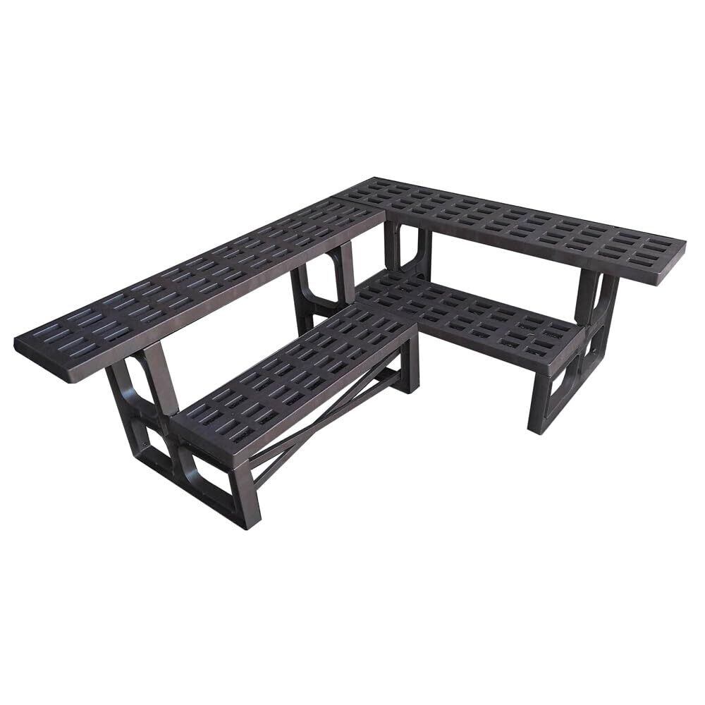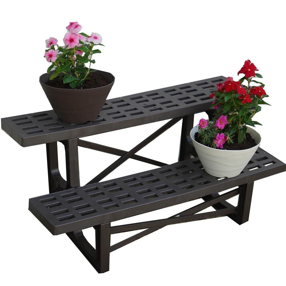 花や観葉植物をお洒落に飾るのに便利 庭や玄関先、ベランダなどに置いて華やかさを演出 この製品は、材料として「プラスチック製容器包装」のリサイクル材を使用しておりますので、色合いが異なる場合があります。 組立後サイズ:幅900×奥行400×高さ410mm 耐荷重:1段あたり約8kg