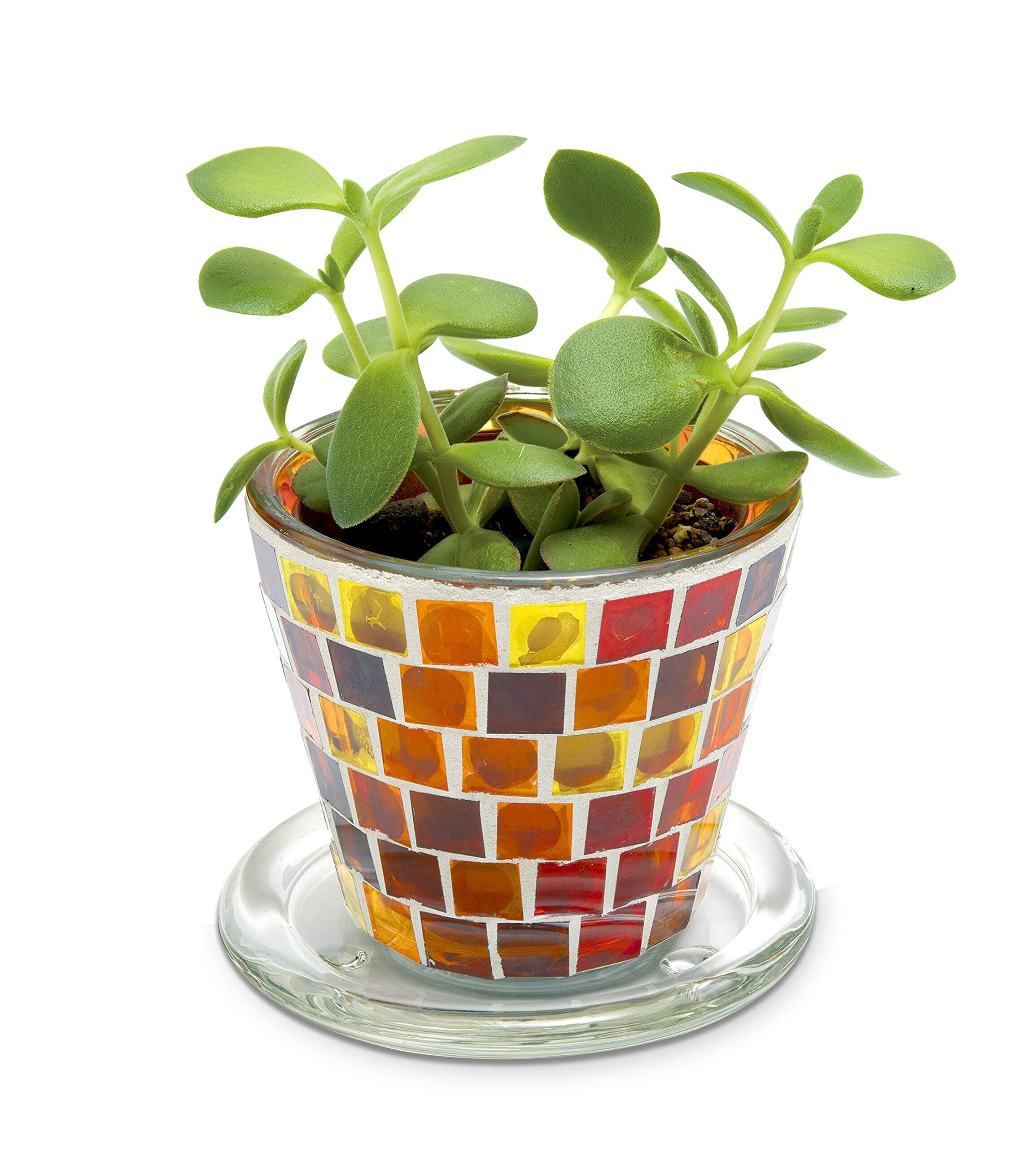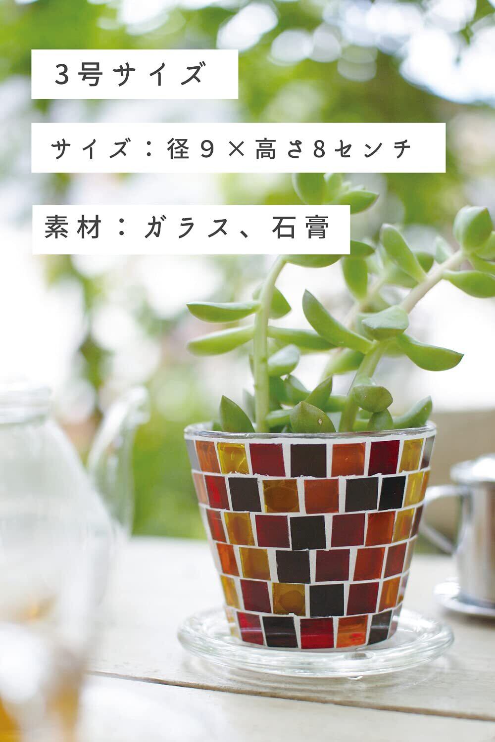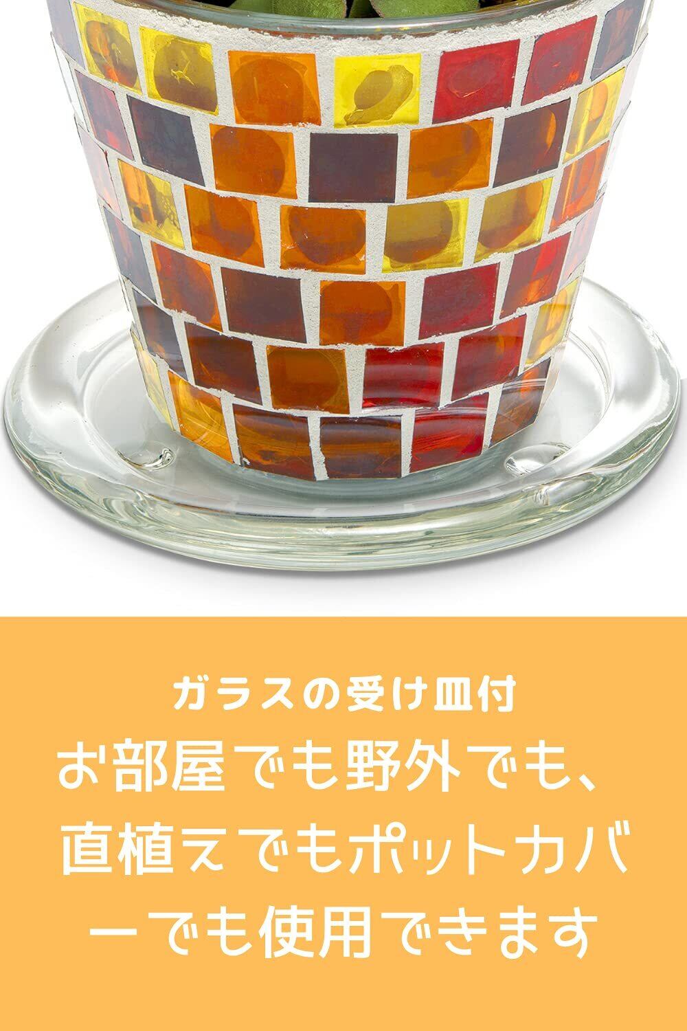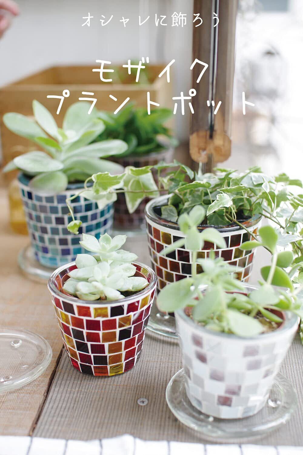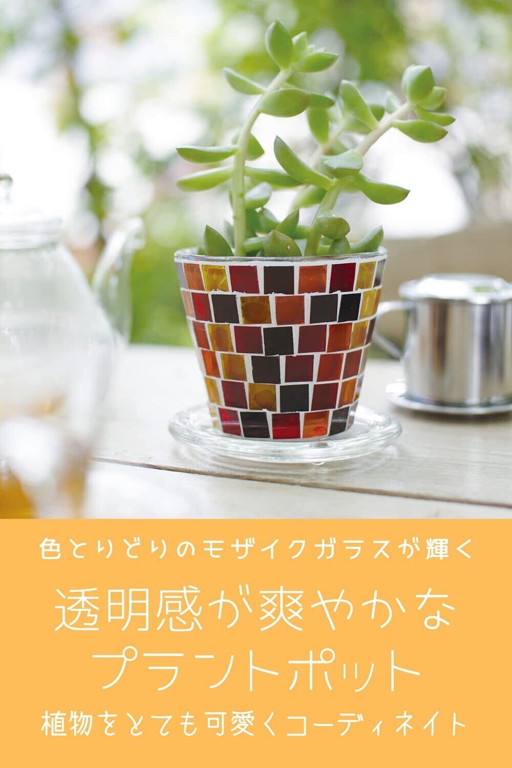 色とりどりのガラスタイルが植物を引き立てる透明感が爽やかなプラントポット