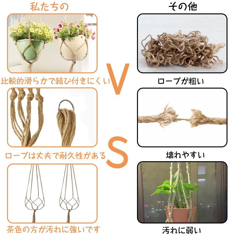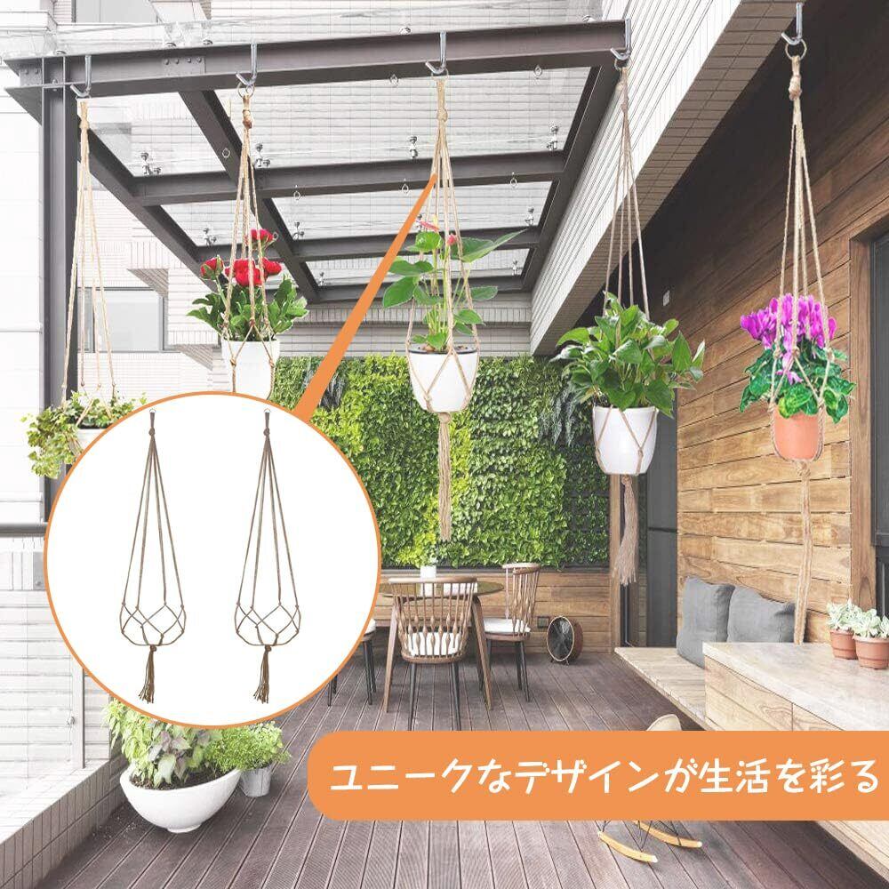 麻縄 植物ハンガー プラントハンガー 吊り下げ 植木鉢 手作りマクラメ植物ハンガ ハンギングプランター 織り鉢植え 鉢植え用 屋外屋内植物に適用 2本セット (ブラウン)