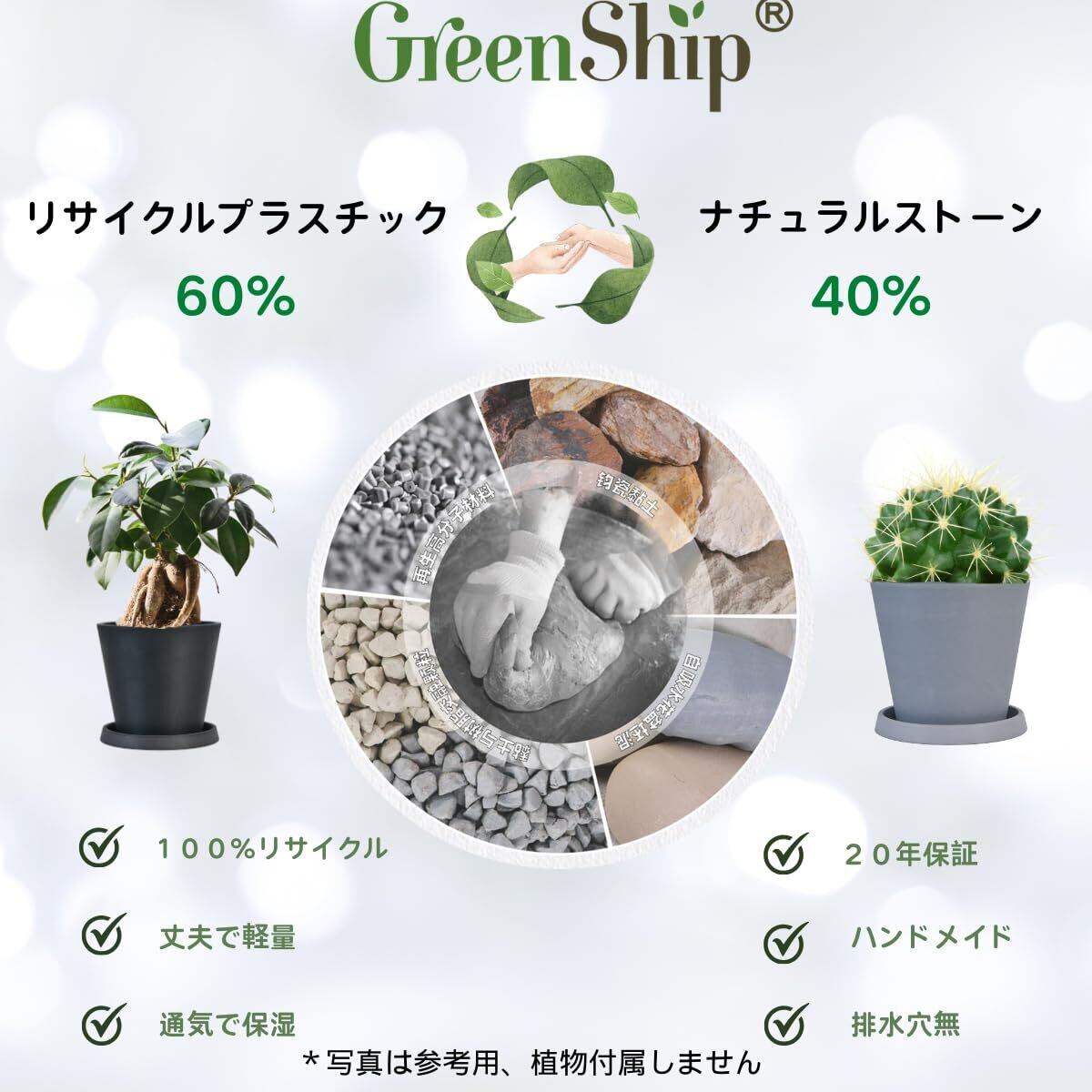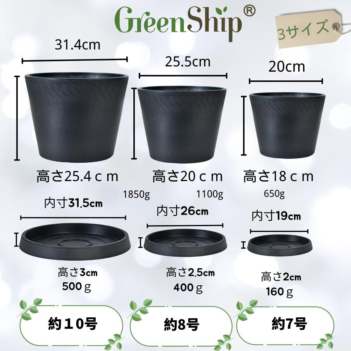Greenship 植木鉢 8号(約25cm) 受け皿付きお得 プラスチック石複合材 マットな