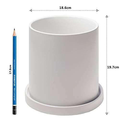 Ekirlin 植木鉢 陶器鉢 白 大型 おしゃれ 18.6cm 8号 受け皿付き 底穴あり 観葉植物 鉢 プランター 鉢植え 北欧 室内 部屋 インテリア