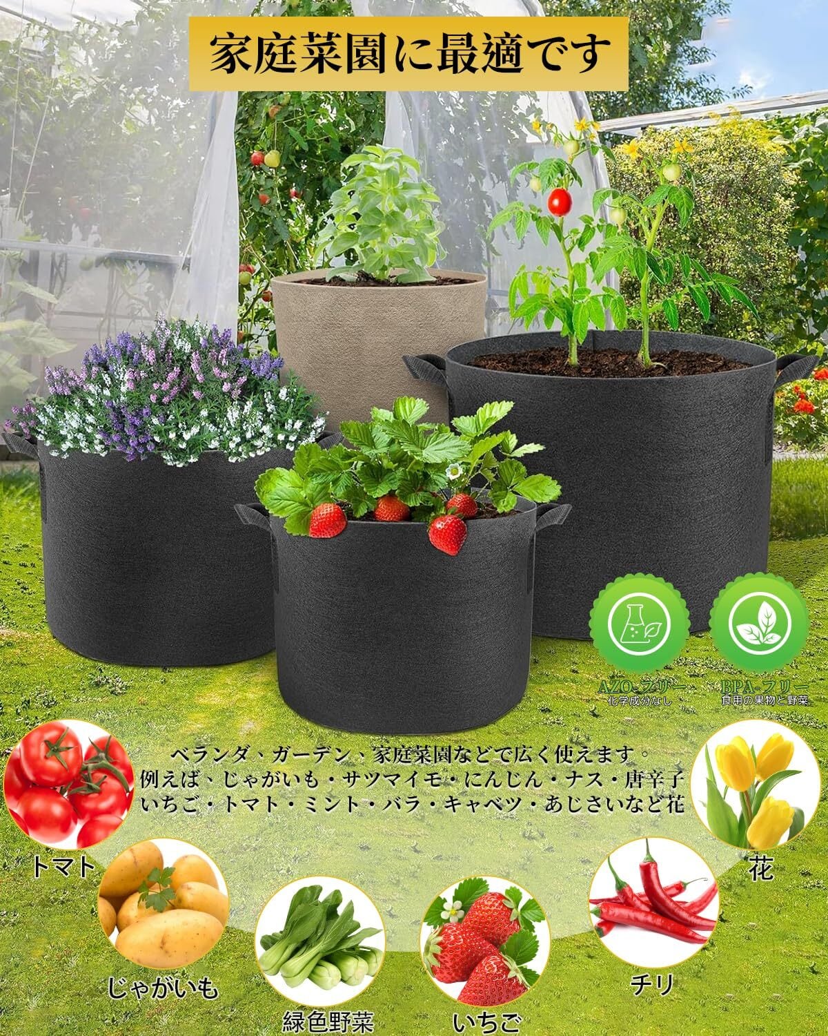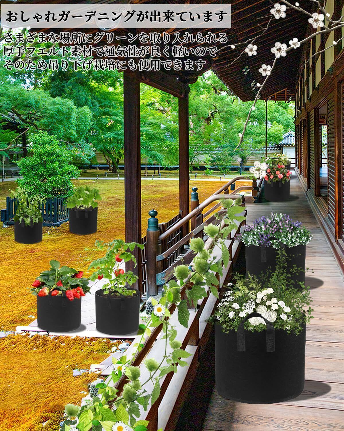 【家庭菜園に最適です】ベランダ、ガーデン、家庭菜園などで広く使えます。例えば、じゃがいも・サツマイモ・にんじん・ナス・唐辛子・いちご・トマト・ミント・バラ・キャベツ・あじさいなど花、果物や野菜の植物育成にぴったり、さまざまな場所にグリーンを取り入れられる。厚手フエルト素材で通気性が良く軽いので、そのため吊り下げ栽培にも使用できます-おしゃれガーデニングが出来ています!