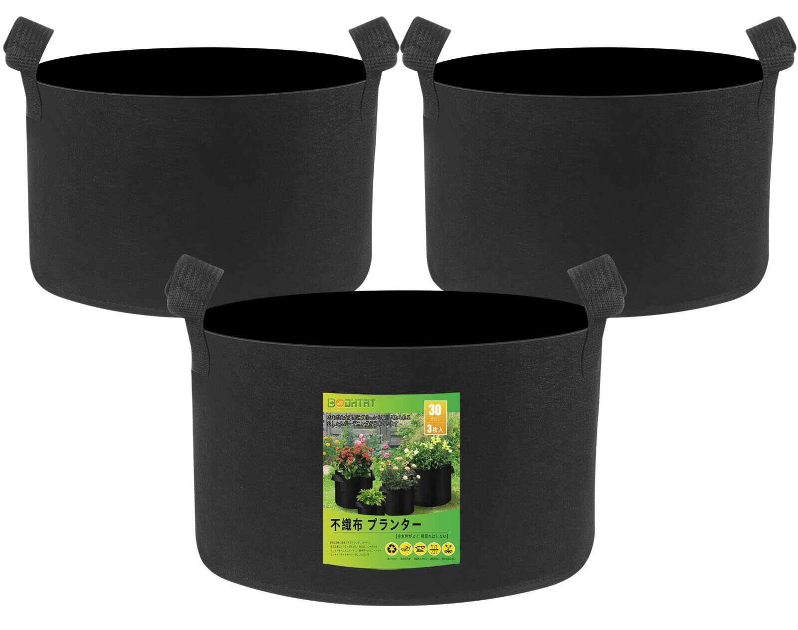 3個セット 不織布 プランター 30ガロン 栽培袋ポット 布鉢 厚くするフェルト 植え袋(直径60cm × 高40cm)園芸 植物育成 野菜栽培,家庭菜園に最適です-BODHTAT