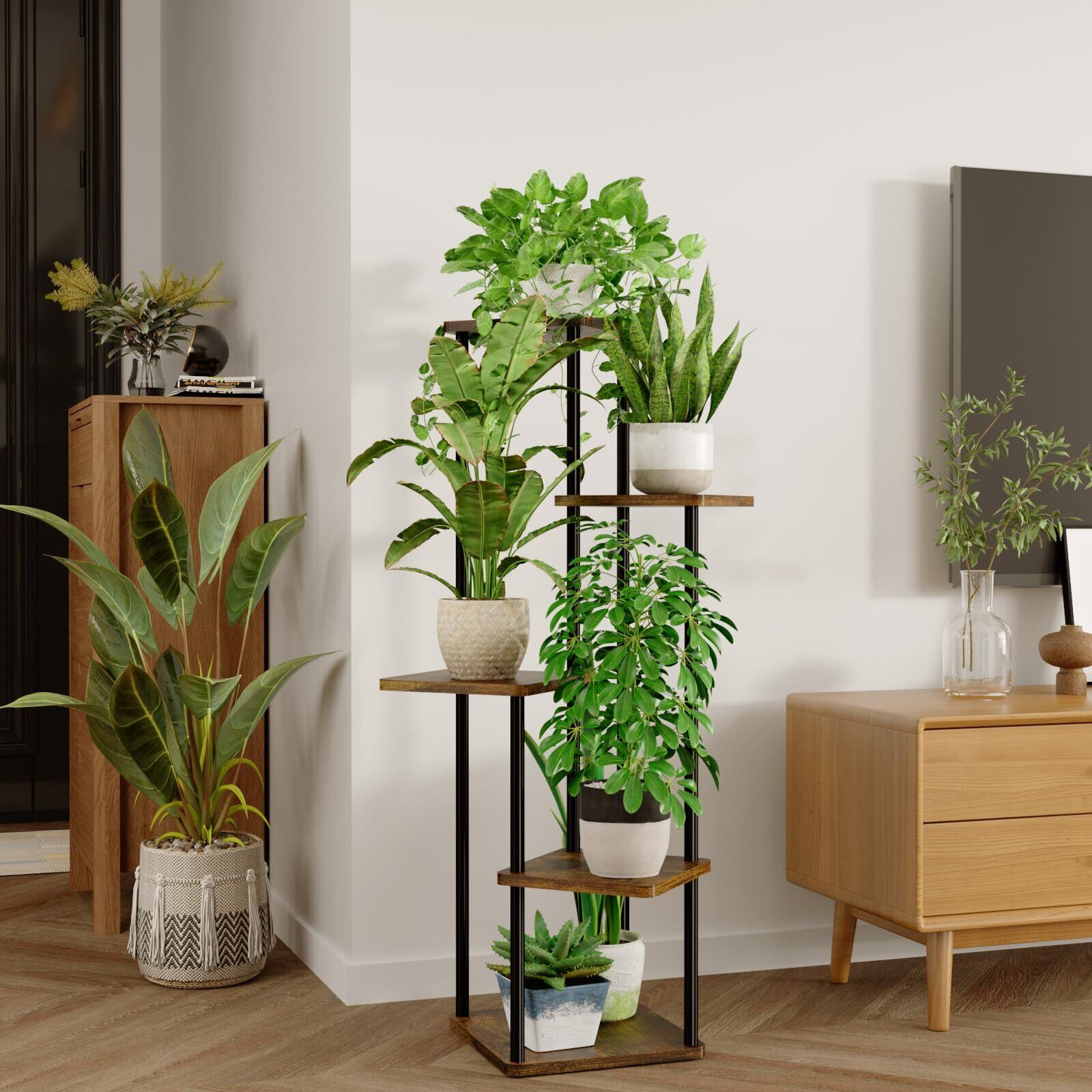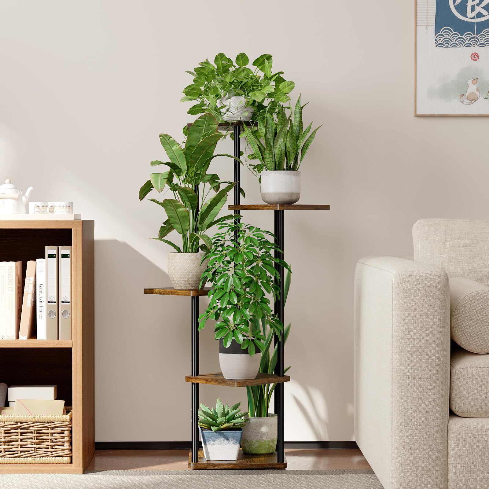 Bamworld フラワースタンド 室内 プランタースタンド 5段観葉植物 台 おしゃれ 植物 棚 植木鉢台 プランターラック リビング 寝室 ベランダ