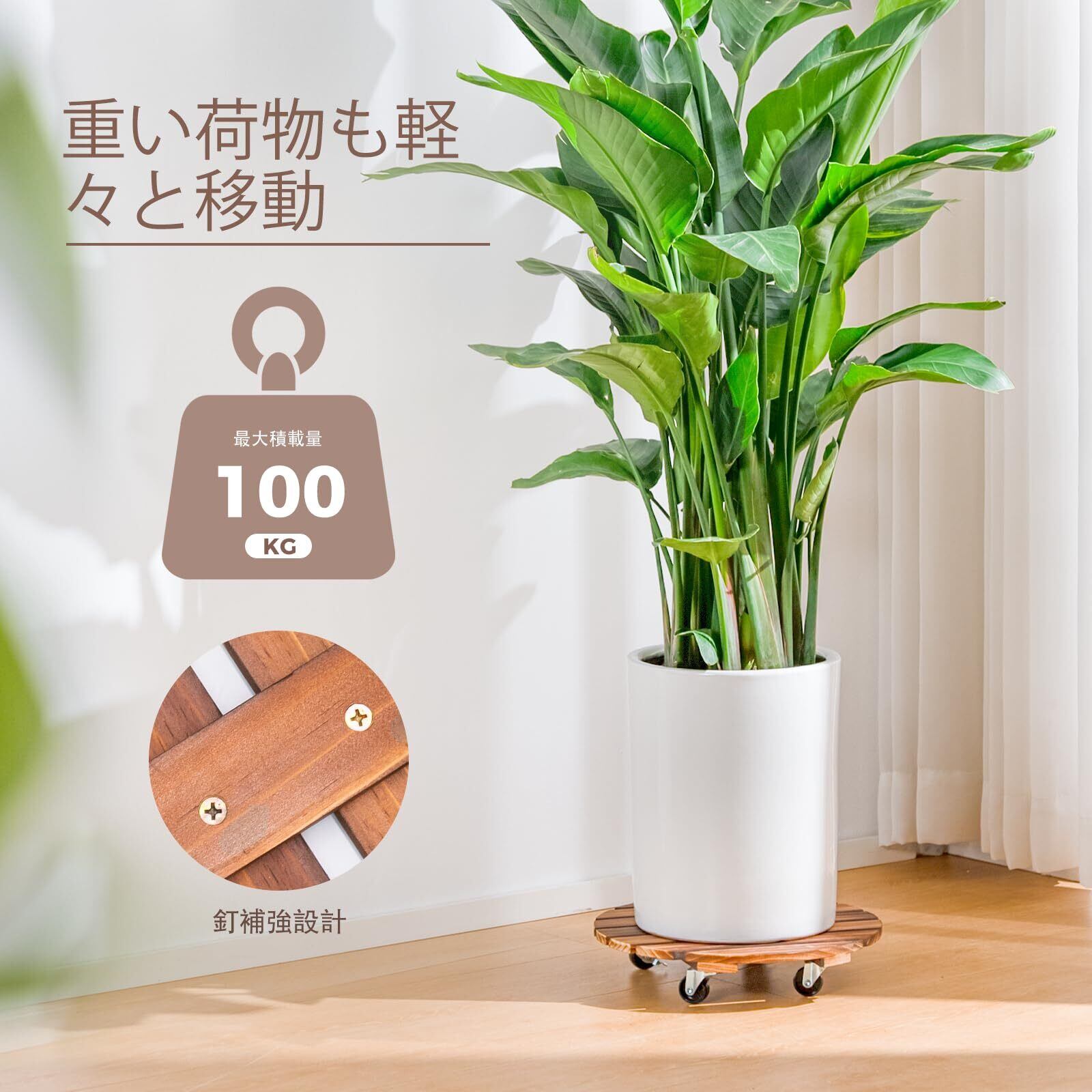 最適30cm幅サイズ:30cm直径のキャスター付き観葉植物 スタンドは、様々なサイズの植え盆に対応。購入後も盆のサイズに合わない心配はありません。