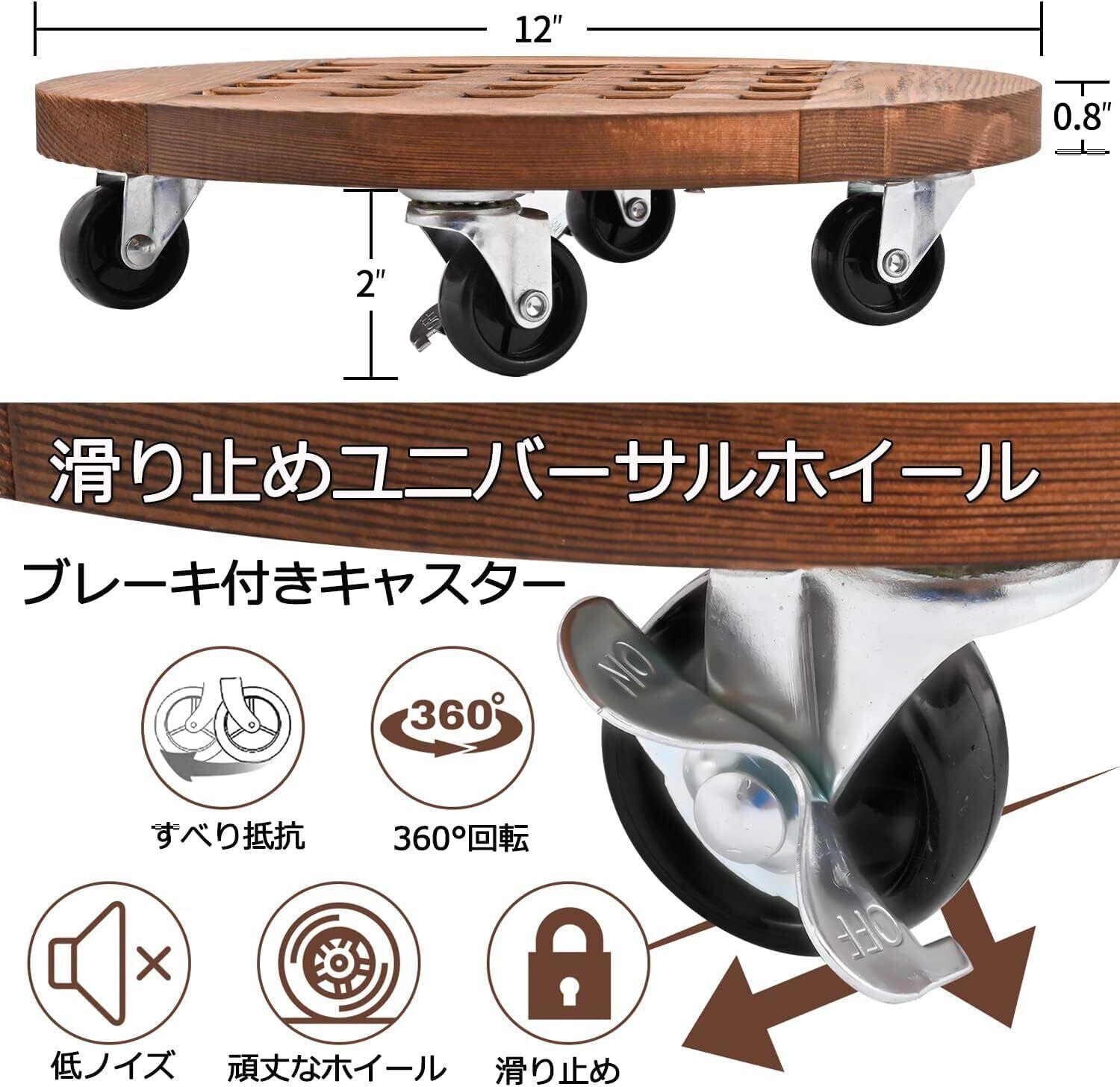 気軽に移動でき: この木製のスタンドは、4 つの360°鉄製ユニバーサルホイールで構成されています,簡単に操縦でき、鉢植えなどの重いものを頻繁に移動するだけでなく、床を傷つけることなく簡単に移動する。アップグレードされた鉄製のホイールは、通常のプラスチック製のホイールよりも耐久性があり、耐荷重性があります
