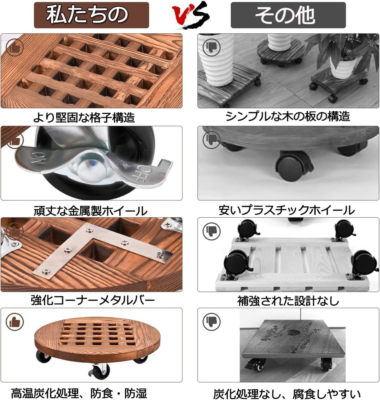 材質: 天然木なため 個々の商品により木目や節・色合いの違い等がありますが、木の表情としてご理解頂けましたら幸いです。防水性を高めることで、屋外のキャスター付き庭用植物キャスターを使用できるようになり。底部の鉄筋は鉢植えの植物の下で追加のサポートと安定性を作成します