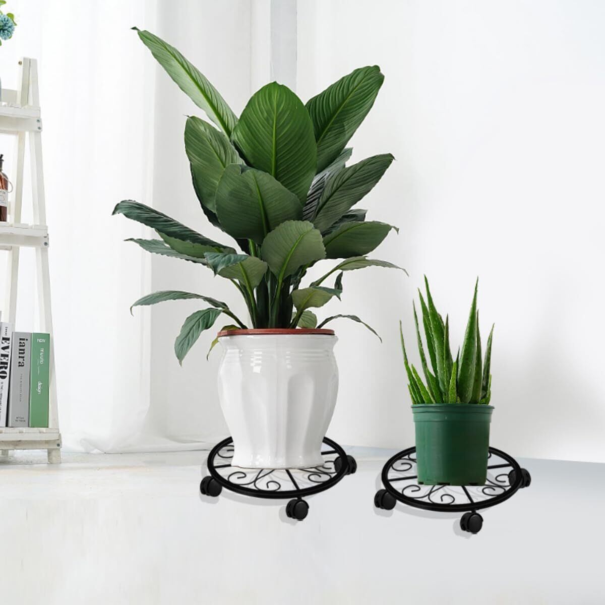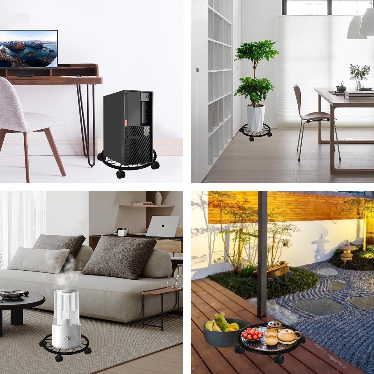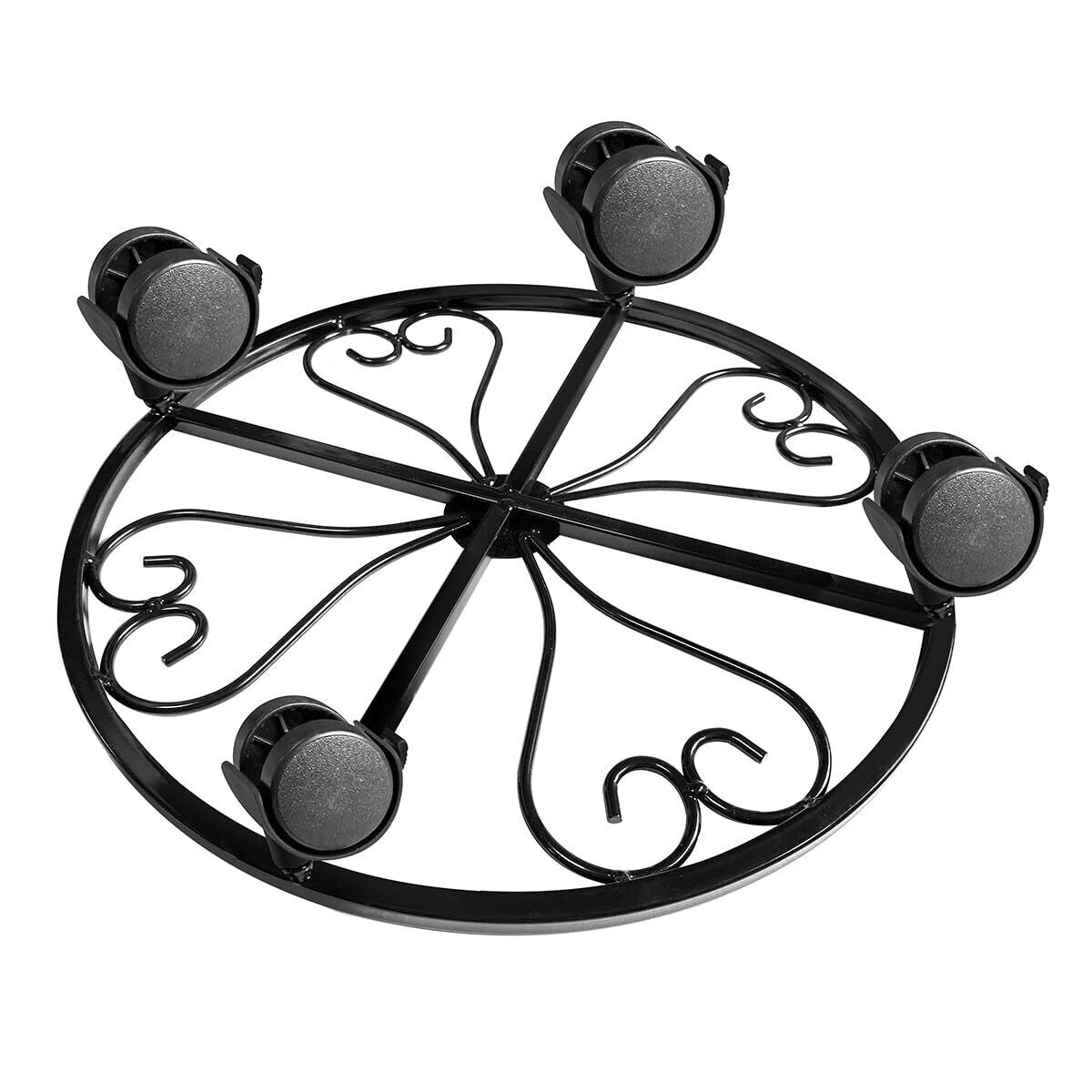 2点セット金属植木鉢フレーム車輪付き、重型防錆鉄植木鉢フレームブレーキ車輪、屋内外装飾棚、円形層化植物スタンド、360度回転キャスター、家庭と庭の装飾に適用(ブラック)