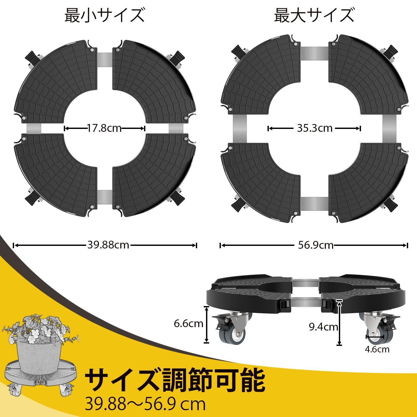 Goovilla 花台 鉢受プレート 移動できる 植木鉢台 キャスター付き 伸縮タイプ サイズ調節可 360°移動便利 滑り止め 38.1-55.8cm 伸縮可能 円形と矩形対応 高さ9.4㎝ 耐荷重200kg (ブラック) | KSショップ