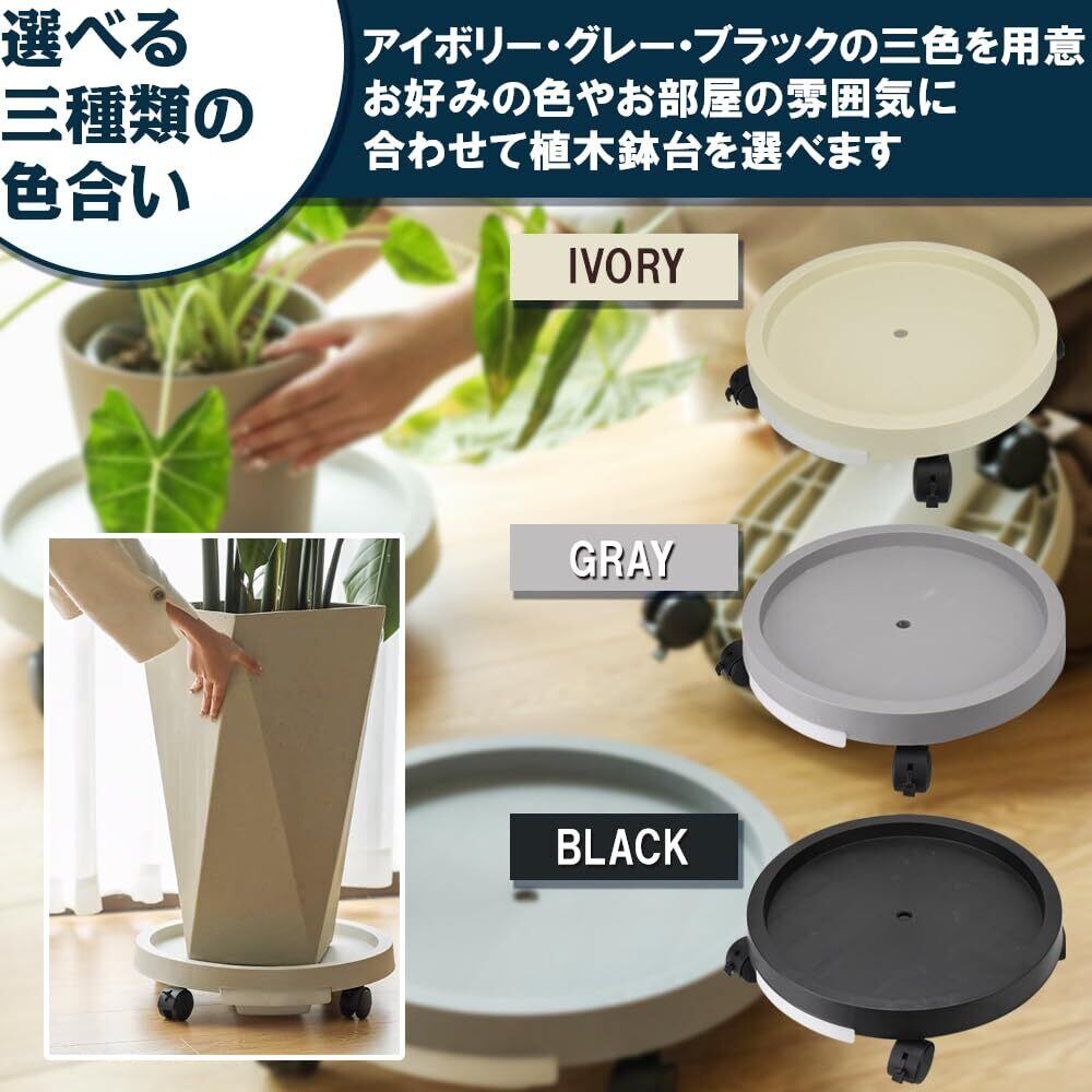 【セット内容】植木鉢台×1点 キャスター×4点 【サイズ(約)】S:外形28cm/内径24.5cm/高さ8cm M:外径33.5cm/内径30cm/高さ8.5cm L:外形39cm/内径34.5cm/高さ9.8cm 【カラー】アイボリー・グレー・ブラック ※お好きなサイズとカラーをお選びいただけます。