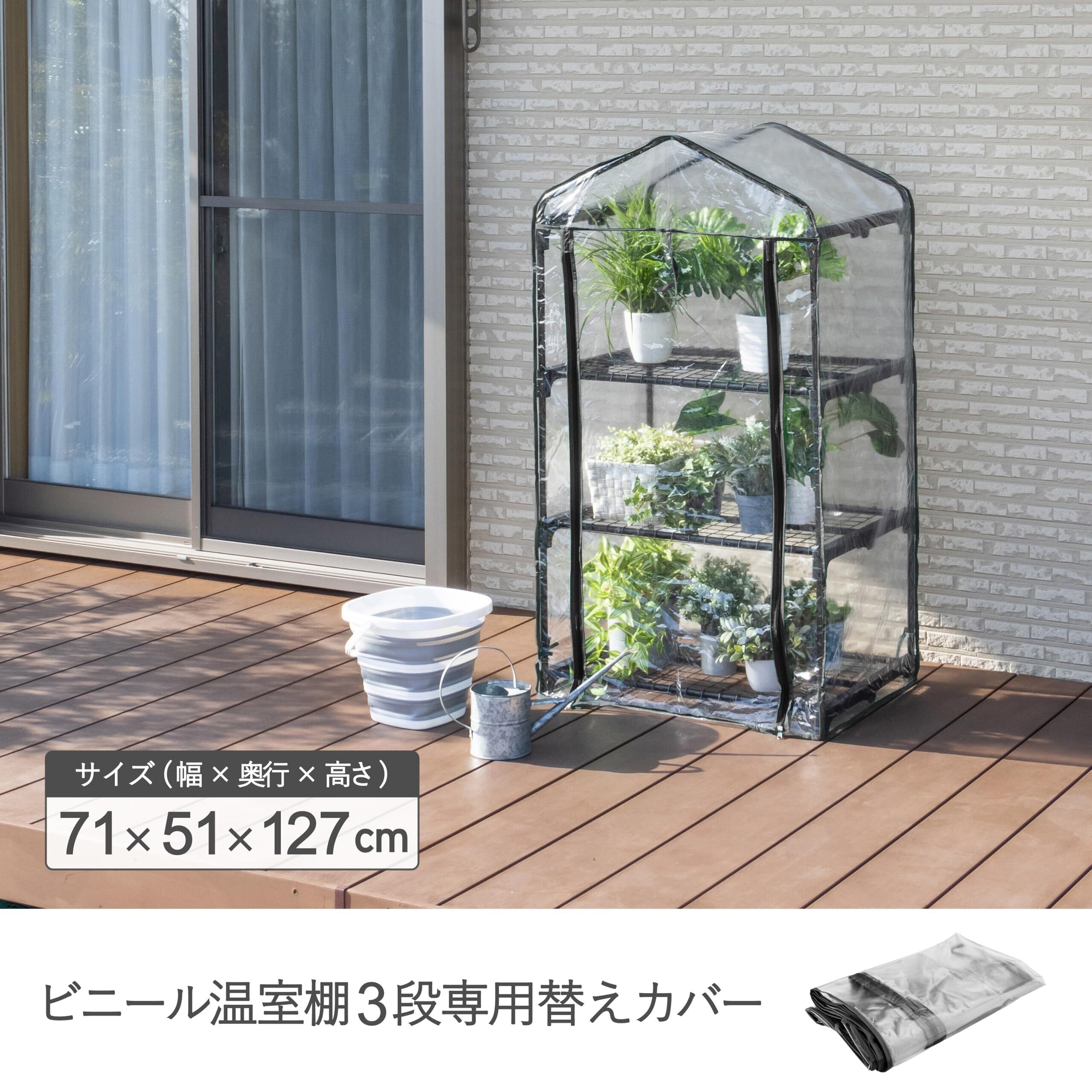冷たい雨や風から大切な植物を守ります! ビニール温室棚3段(AS-OS-03BK)専用のカバーです。