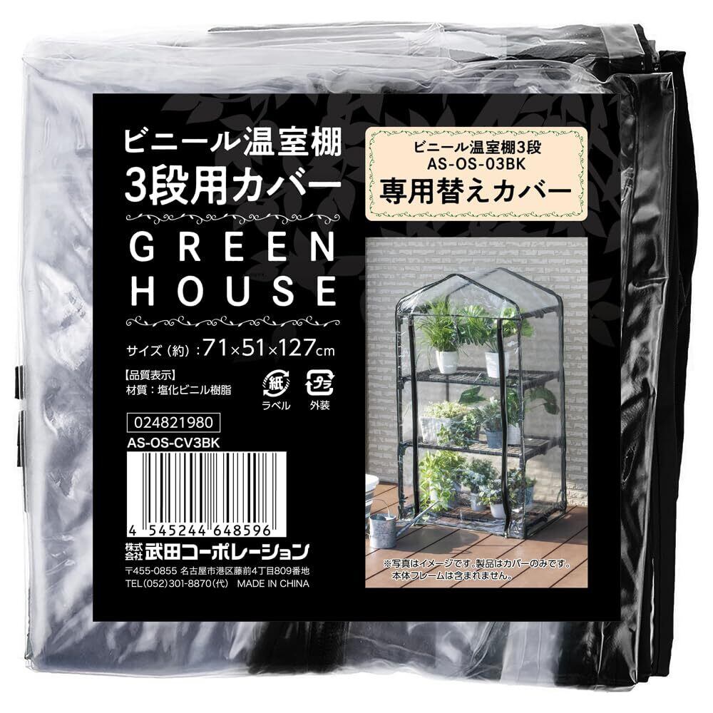 武田コーポレーション【フラワースタンド・ガーデンラック・家庭菜園・温室】 ブラック 71×51×127cm ビニール温室棚3段用カバー AS-OS-CV3BK