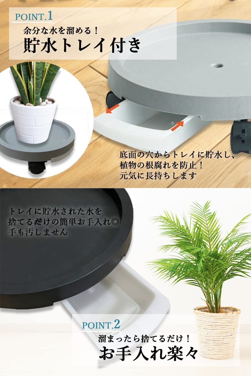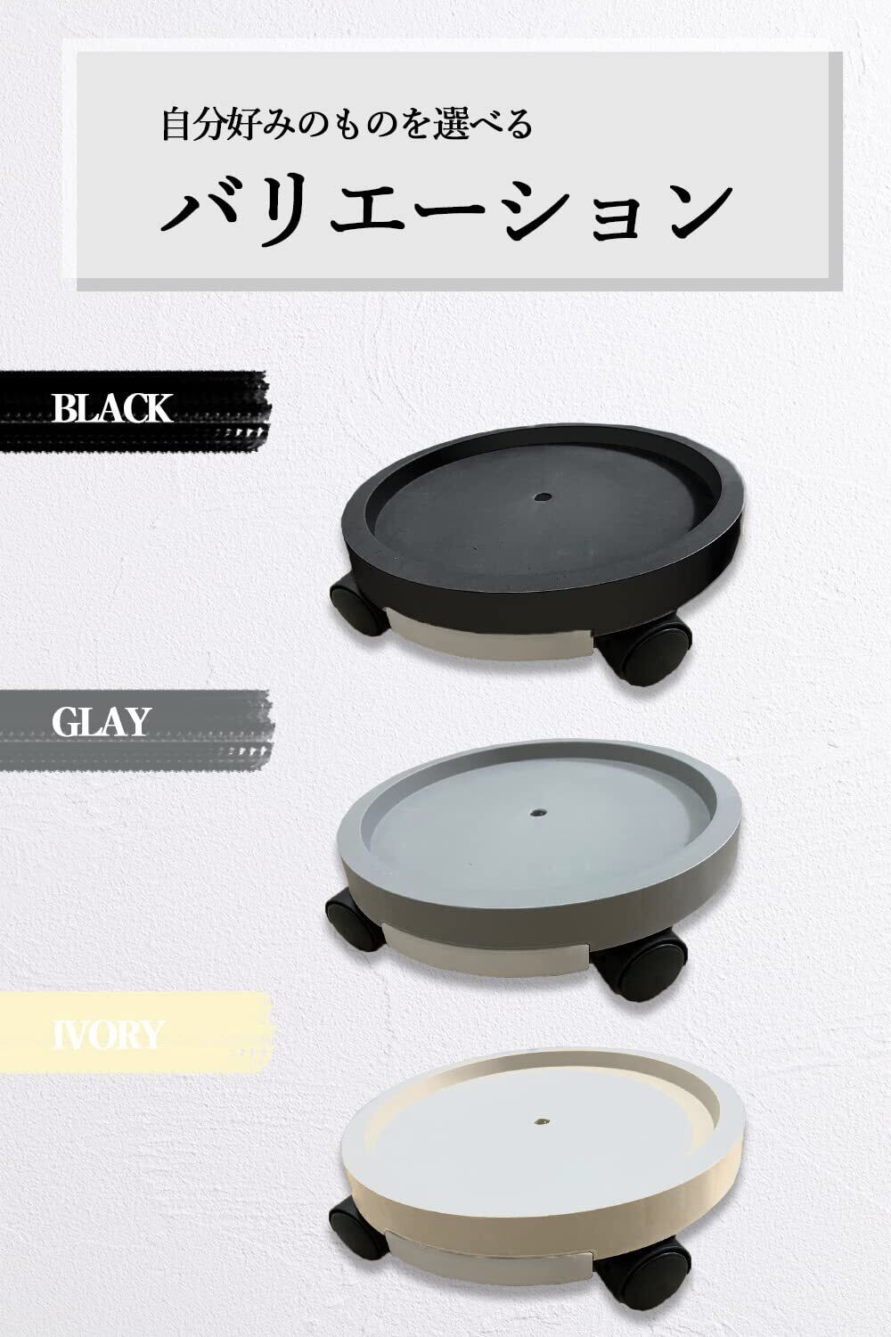 【 さまざまなシーンで活躍! 】 キャスター付きで移動が楽になるため、植木鉢にはもちろん、陶器の花瓶、ゴミ箱、重たい品物などさまざまな用途でご使用いただけます。室内や屋外どちらでも使用可能で、生活をより豊かにしてくれるアイテムです!
