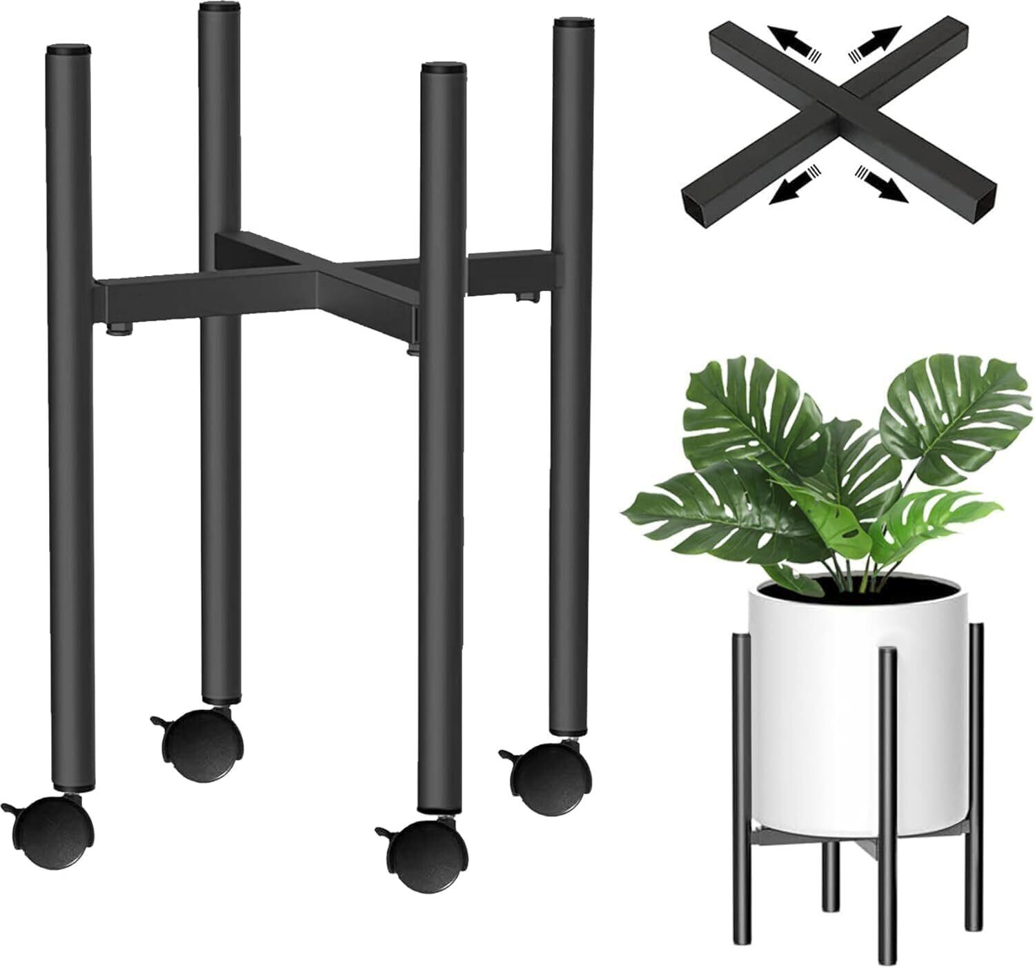 ZMZZZX フラワースタンド プランタースタンド 移動花台 幅20-35cmまで調整可能 鉄 キャスター付き ロック付き 室内 屋外 (丸チューブ, 小さい 伸縮幅20~35cm)