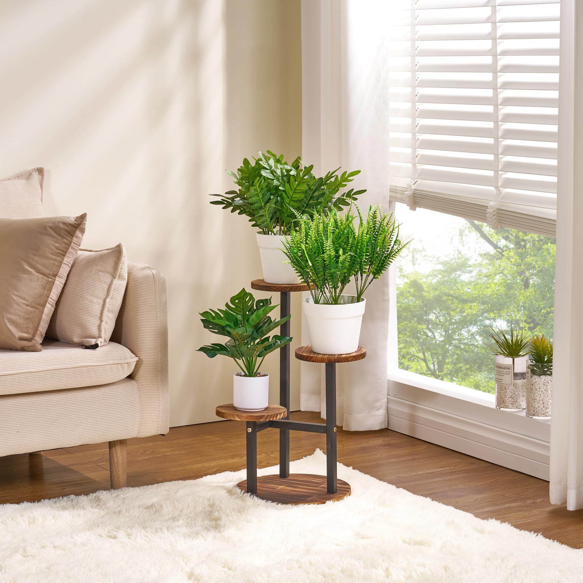 【省スペース】この植物フラワースタンドはシンプルでコンパクトなデザインを採用しており、垂直方向のスペースを最大限に活用し、複数の鉢植えをずらして置くことができます。スペースの合理的な使用,美しさと実用性を兼ね備えたフラワースタンドを作成します。