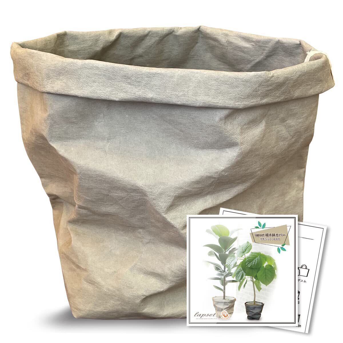lapset 鉢カバー 観葉植物 おしゃれ 北欧 室内 天然素材 レザー 特殊クラフト紙 5号鉢相当 グレー Mサイズ