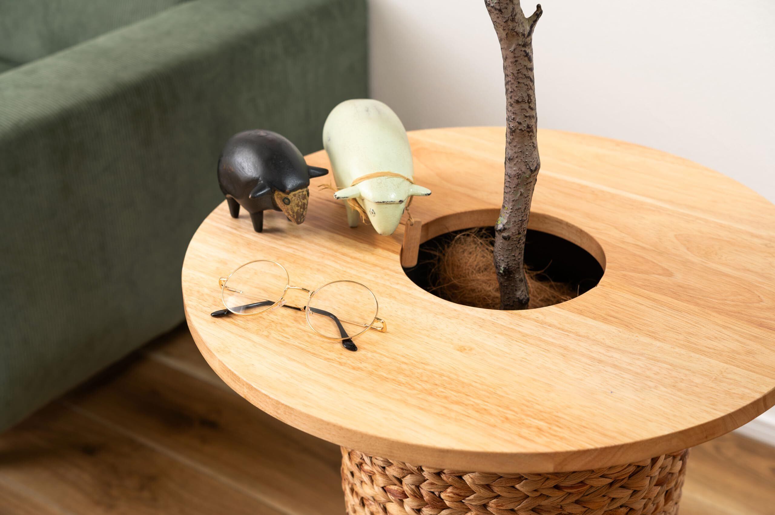 ROOM ESSENCE 天然木 プランターテーブル HOW-014NA 東谷helpoo 観葉植物 植木鉢 プランター カバー (サークル(円形))