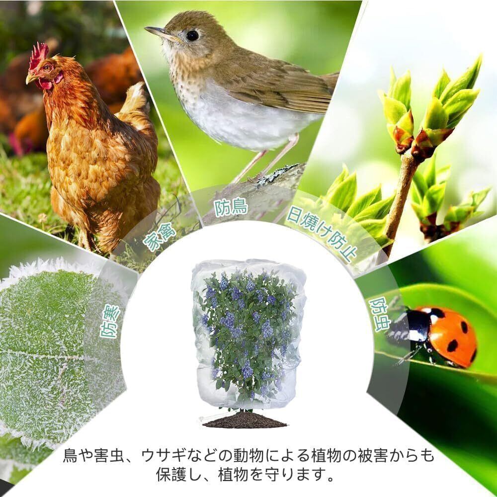 【植物保護をするツール】:鳥、害虫(バッタや毛虫、アゲハチョウが)、ウサギ、その他の動物による噛み付きから植物を保護します。野菜の庭、果樹園、バルコニーの鉢植えの植物栽培に応用できます。だから、猛暑の日から植物も守りられます。猛暑の日でも守ります。は葉っぱを食べられる心配も無く。