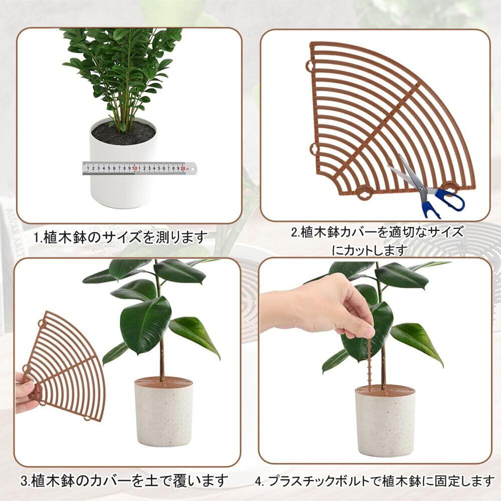 【使いやすい】植木鉢カバーは取り付けと取り外しが簡単です。植木鉢の直径と植物の根系のサイズを測るだけで、植木鉢のグリッドは植木鉢のサイズに合わせてさまざまな形やサイズに自由にカットでき、付属のプラスチック製の杭で固定でき、主に円形の植木鉢に適しています。植木鉢。鉢植えの植物の外観には影響しません。
