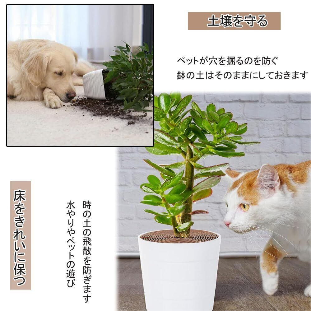 【植物の健全な成長を守る】猫や他のペットが穴を掘るのを防ぐ観葉植物保護剤として人気があります。ユニークな中空デザインはインテリアに最適です。屋内でも屋外でも使用できます。植木鉢のインサートとしても植物カバーとしても、植物と土壌を保護し、植木鉢内に植物を保つことができます。