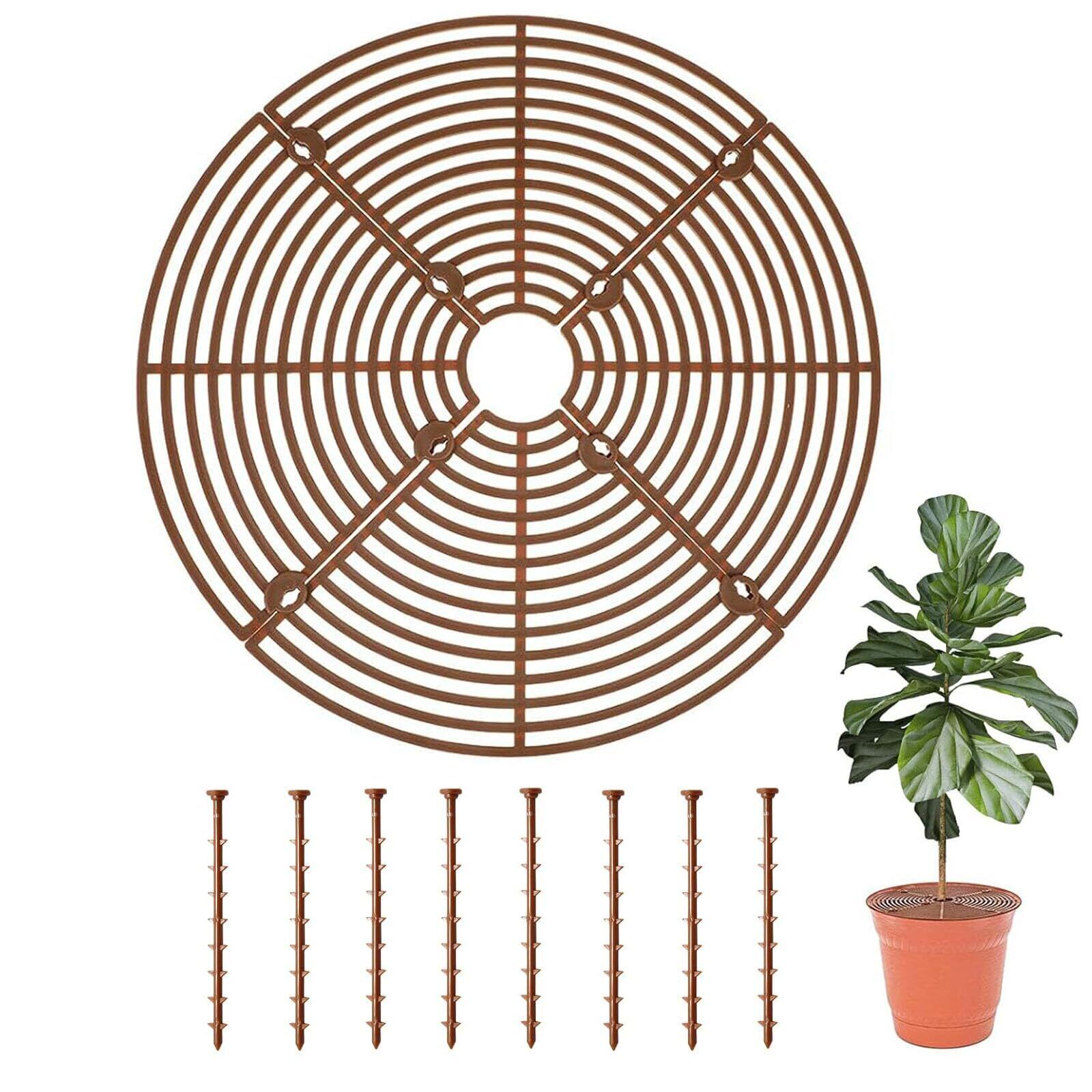 植木鉢グリッド 植木鉢カバー 直径30cm 土壌ガードカバー 丸型 中空 通気性 転倒防止 土壌プロテクター保護 猫犬対策 鉢カバー 掘りストッパー 保護ケース ガードレール 観葉植物 屋内屋外植物 鉢用 園芸用品 (ブラウン)