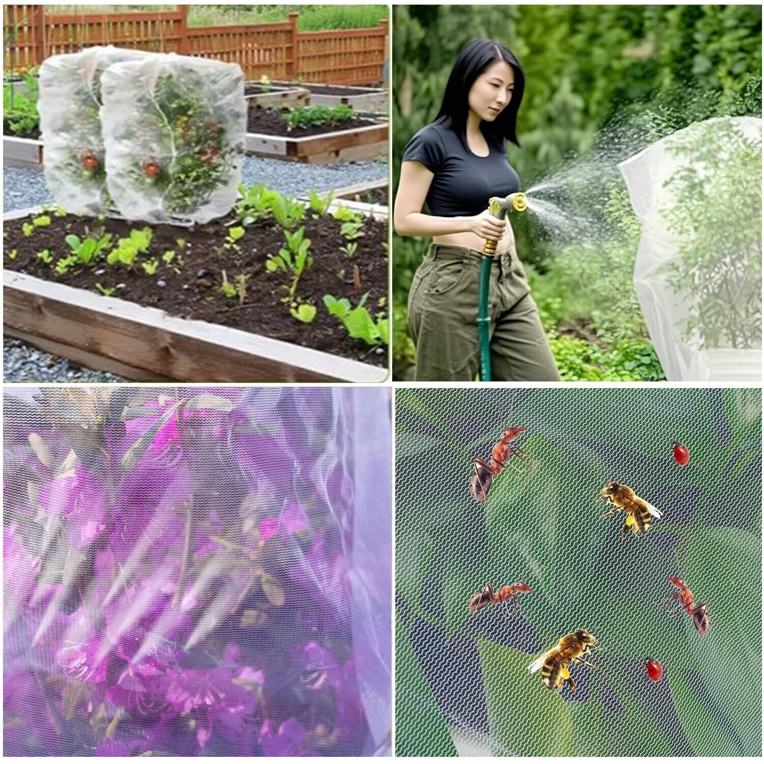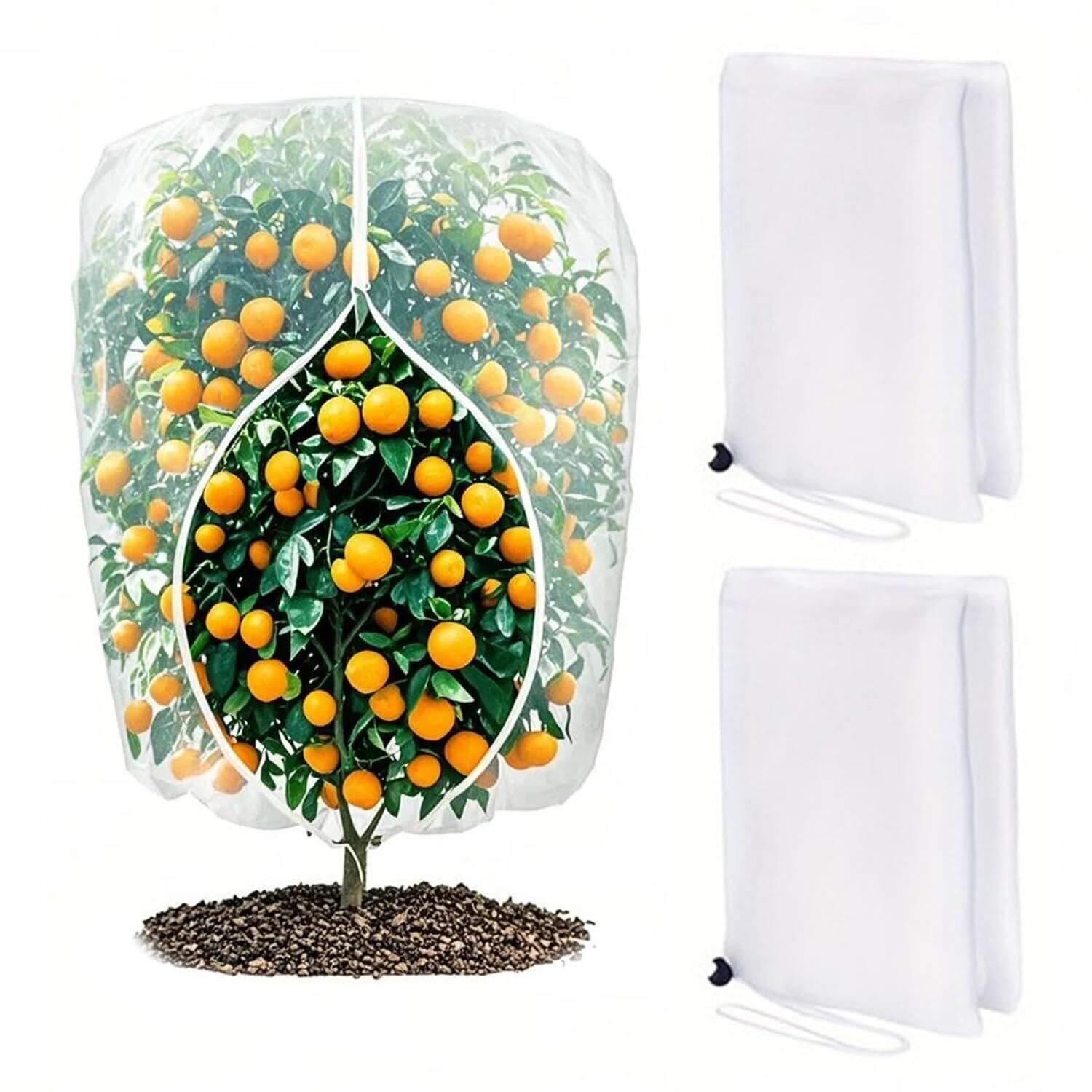 防虫ネット 2枚セット 巾着式 ジッパー付き 植物保護 カバー 防鳥ネット ファスナー付き 園芸用 メッシュ 鉢植え 透明 虫よけ 水やり可能 防風 通気性 プランターカバー 虫鳥除け網 (100*140cm,2枚)