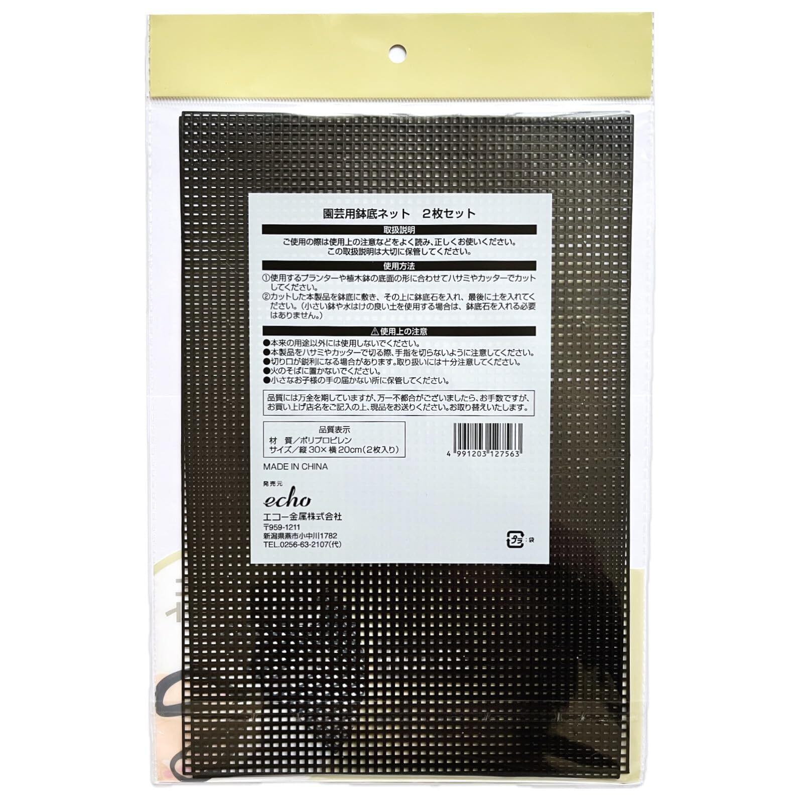 【セット内容】エコー金属 園芸用鉢底ネット 2枚入り×2個(計4枚)。メモシール付きで便利。