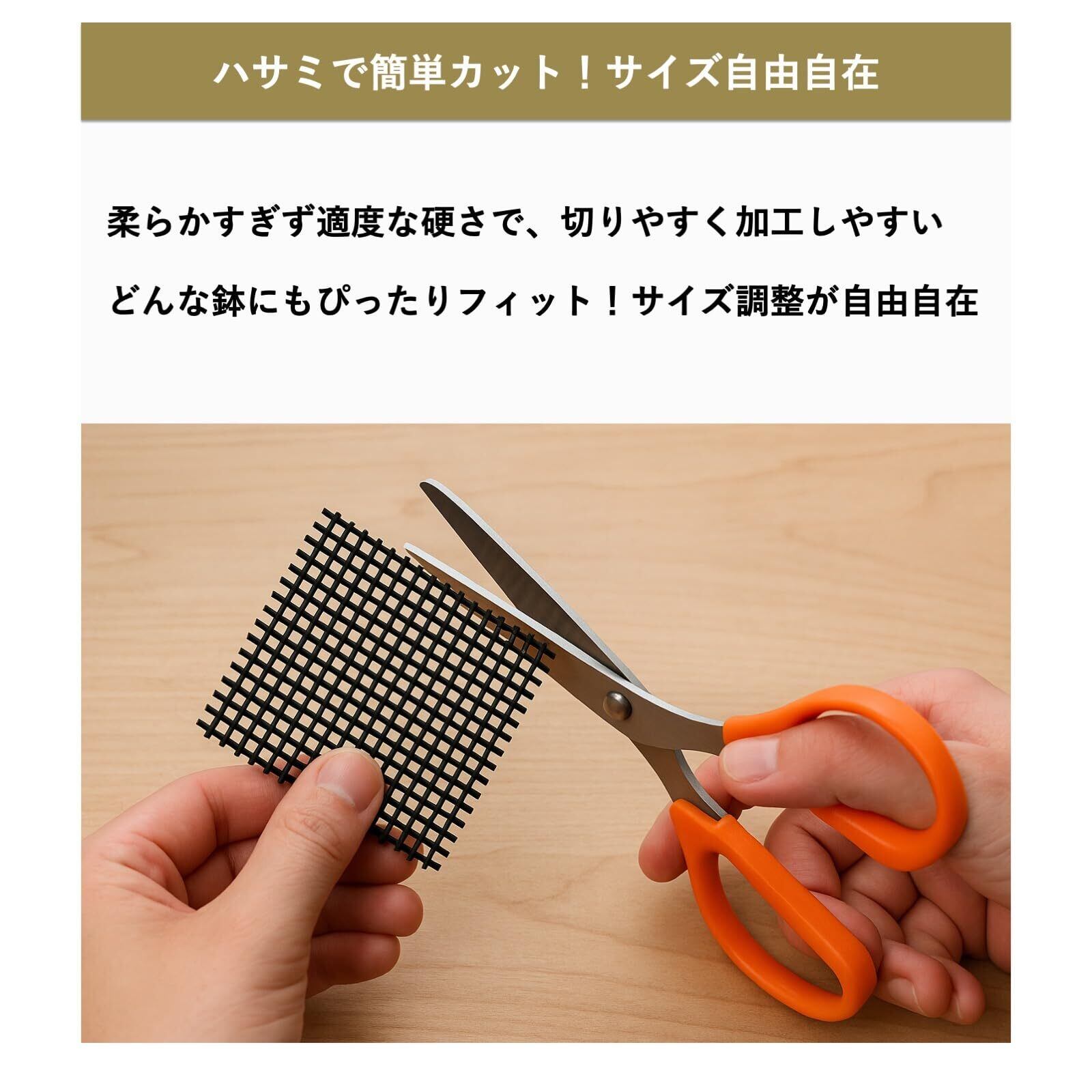 【自由にカット可能】サイズ約30×20cmのネットは、必要に応じてハサミで簡単にカット可能。さまざまな鉢に対応できます。