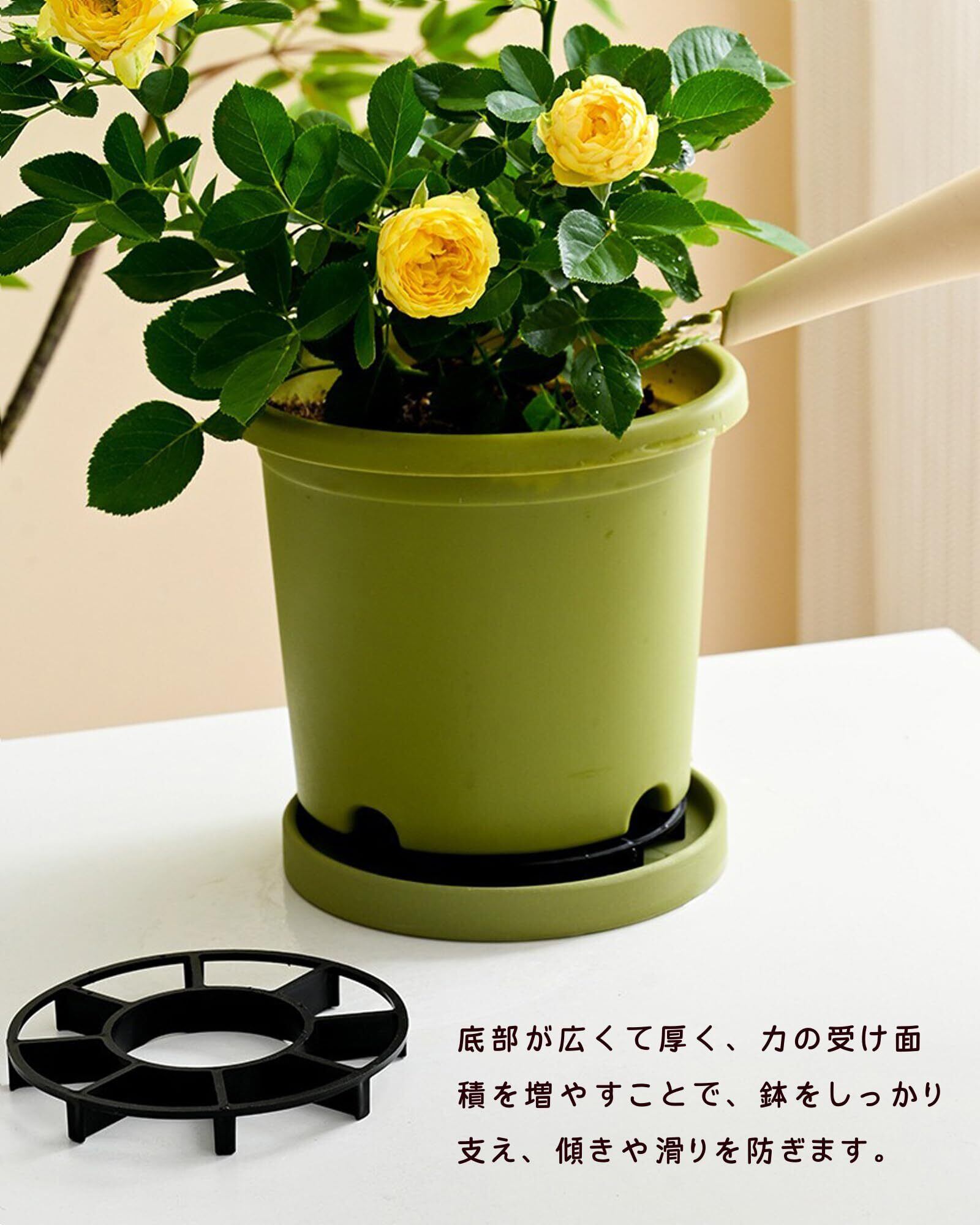 【安定した荷重と滑り止め設計】植木鉢 スペーサーの底部が広くて厚く、受ける力の面積を増加させることで、鉢をしっかりと支え、鉢が傾いたり滑ったりしないようにします。小型・大型鉢のどちらにも対応し、安定した使用が可能です。