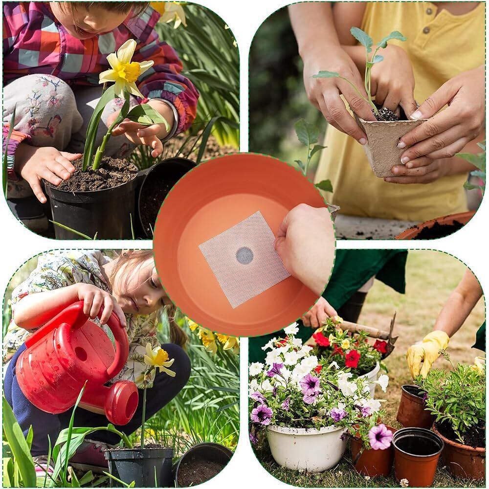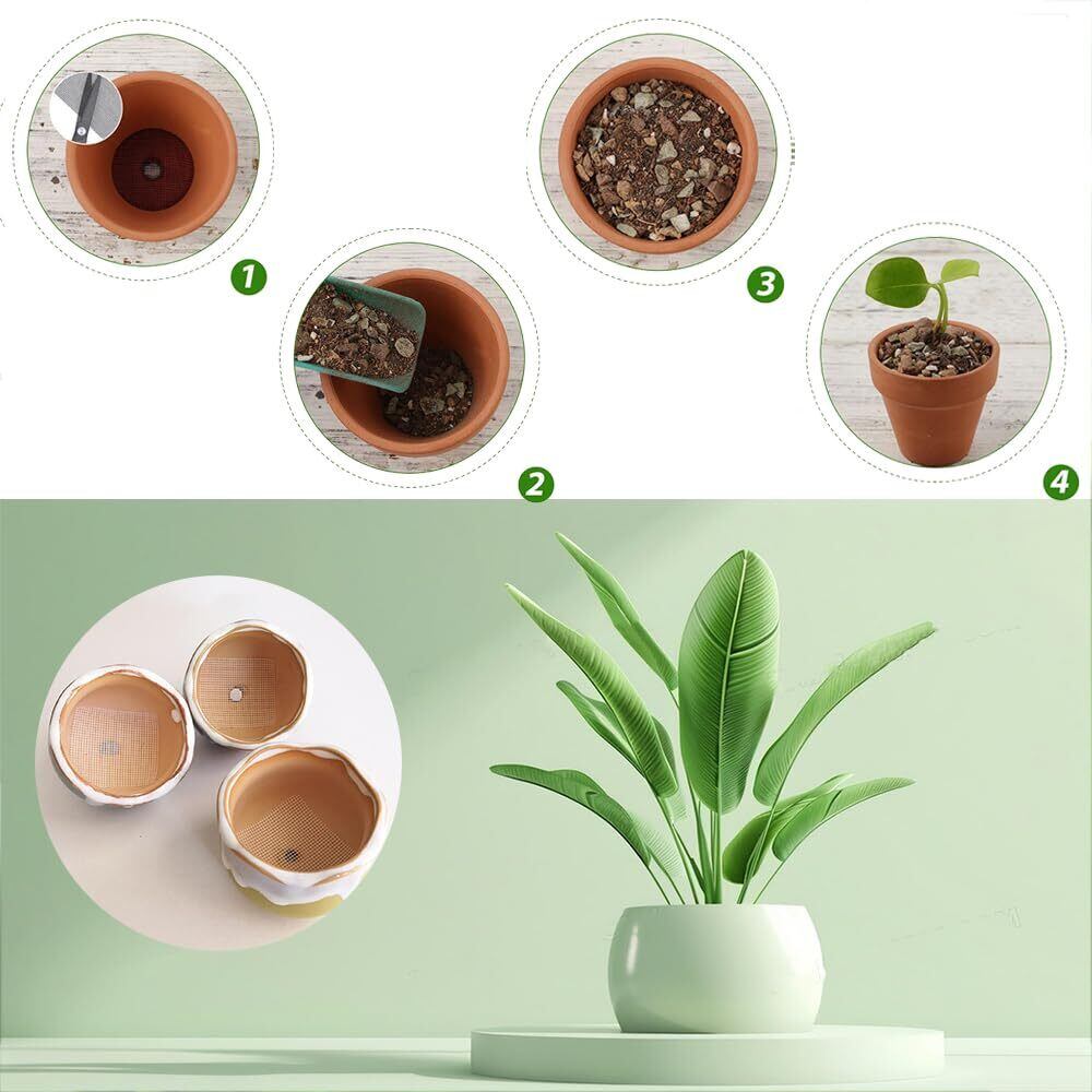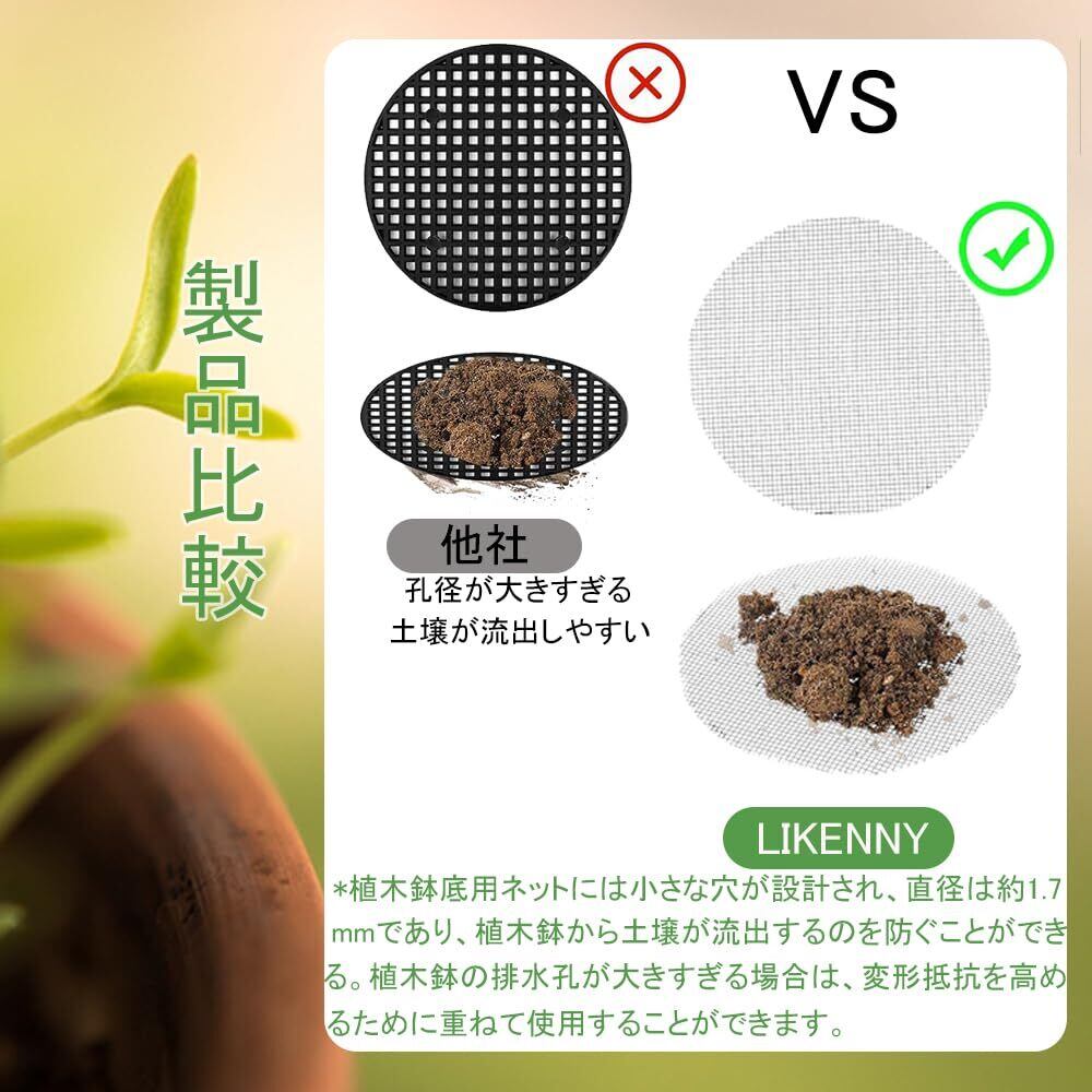 【土壌流出防止】:植木鉢底用ネットには小さな穴が設計され、直径は約1.7mmであり、土壌流水が流されるのを防ぐことができるが、排水に影響を与えず、植物の健康成長を促進することができる。