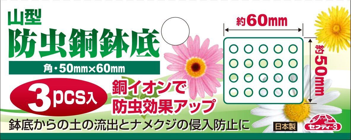 セフティー3(Safety-3) 防虫銅鉢底 角 3枚入り 60mm×50mm
