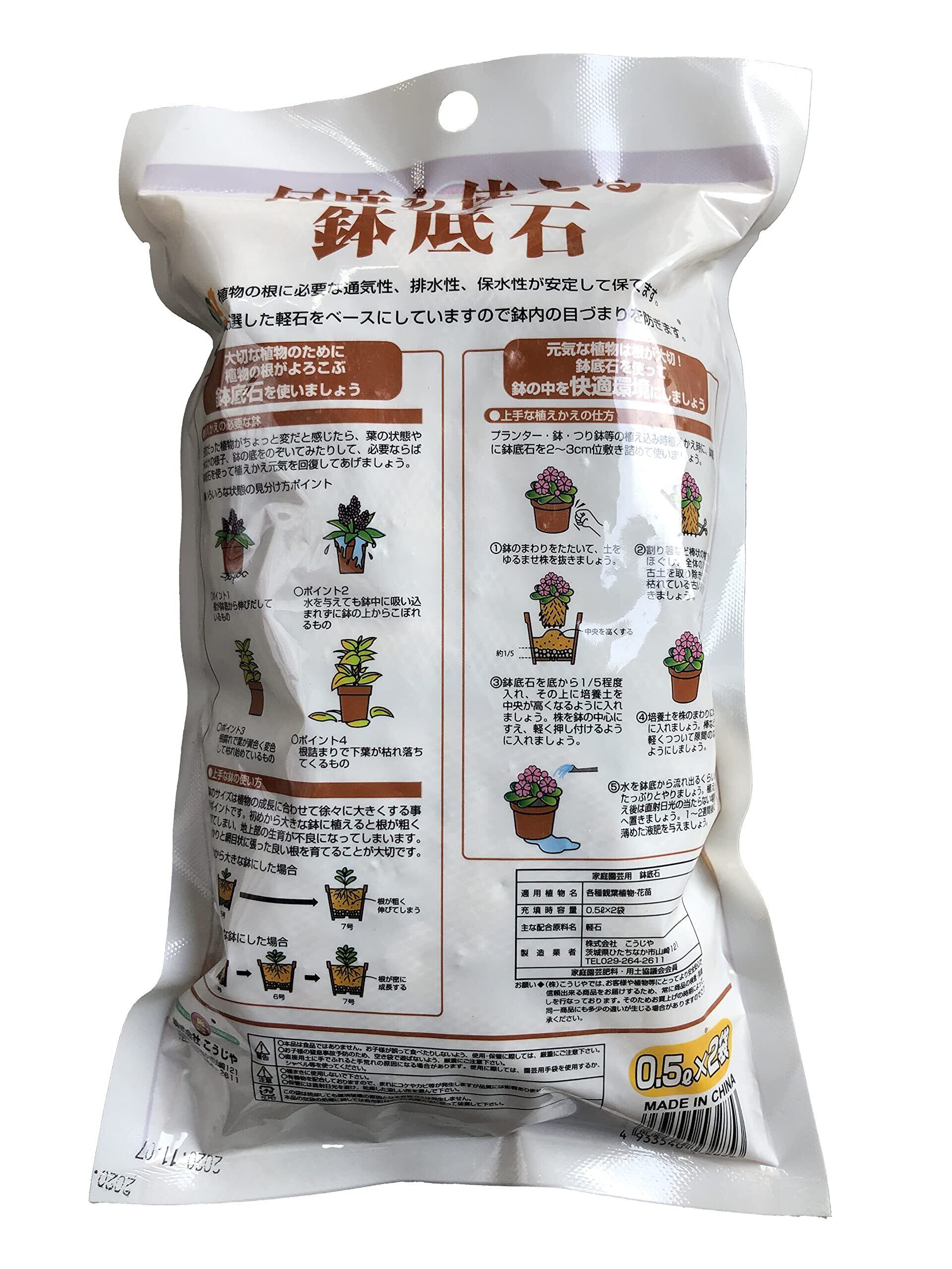 ・上手な植えかえの仕方:プランター・鉢・つり鉢等の植え込み時や植えかえ時に、鉢底に鉢底石を2-3cm位敷き詰めて使いましょう。