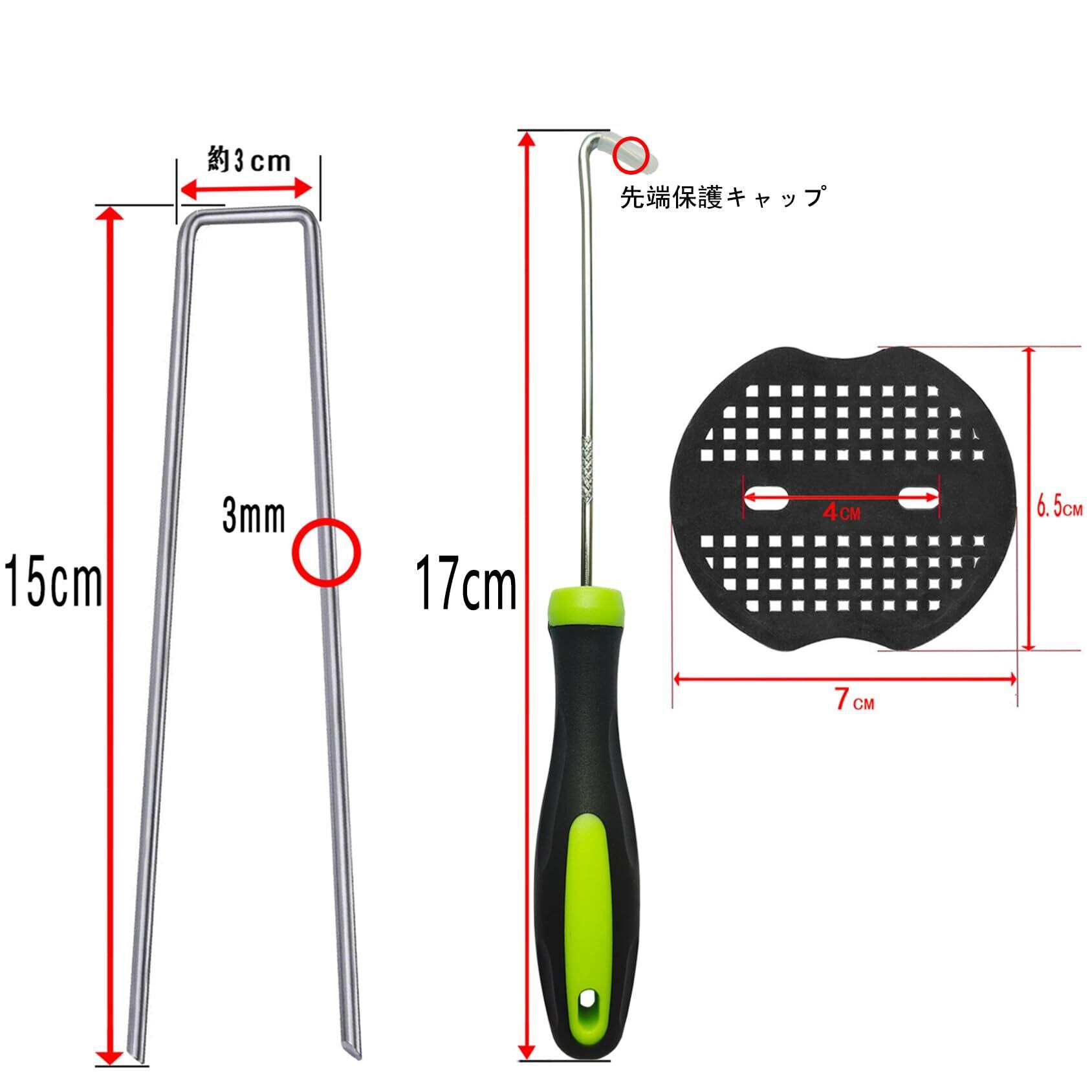 【抜きフック付き、再利用可能】便利な引き掛け針工具も付属しており、スムーズな設置をサポートします。再利用の際に作業効率が大幅に向上して、とても便利です。製品を繰り返し使用することで資源の消費を減らし、経済的な負担を軽減できます。ピンの長さ15㎝と20㎝の2種類があります。選べる数量:30本、50本、100本、200本のセットから選択可能です。