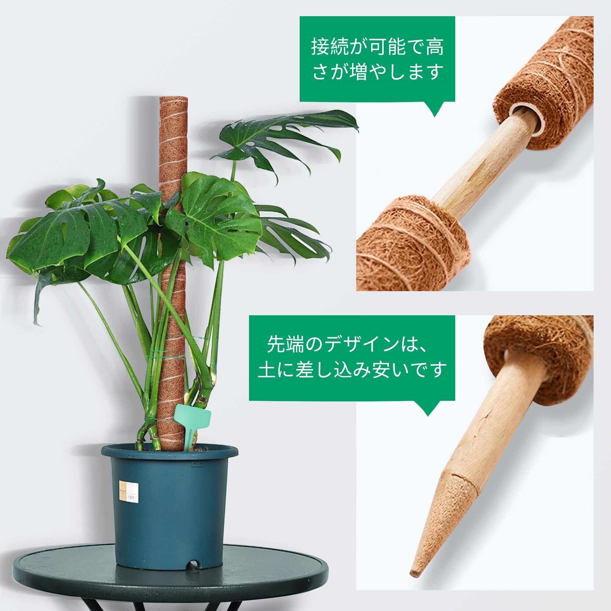 YOUSHY園芸支柱 観葉植物モンステラ ヘゴ支柱つる性植物 ココスティック 植物サポートフラワースタンド ココナッツ 花支え ガーデニング 農業用 園芸用 (2個40cm園芸支柱+2m麻縄+5個T型花型植物ラベル) | KSショップ