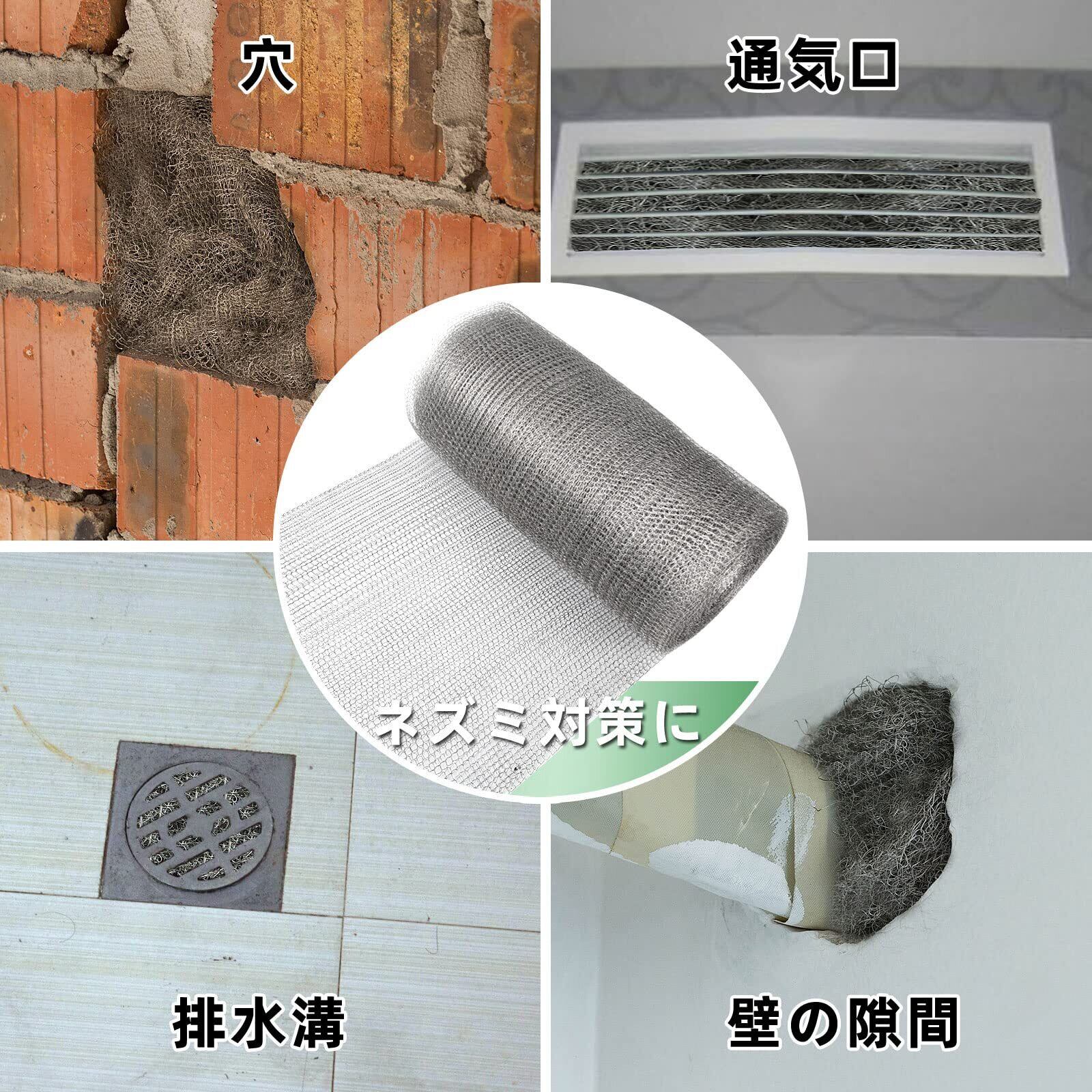【高品質の素材】優れた304錆びずステンレス糸で作らており、粘り強くて柔らかい、銅メッシュより良好な耐用性と錆防止効果。錆びること心配なく、室外の使用に相応しい。壁やコンクリート、屋根裏の隙間など、より様々な場所にお使いいただける様になりました。