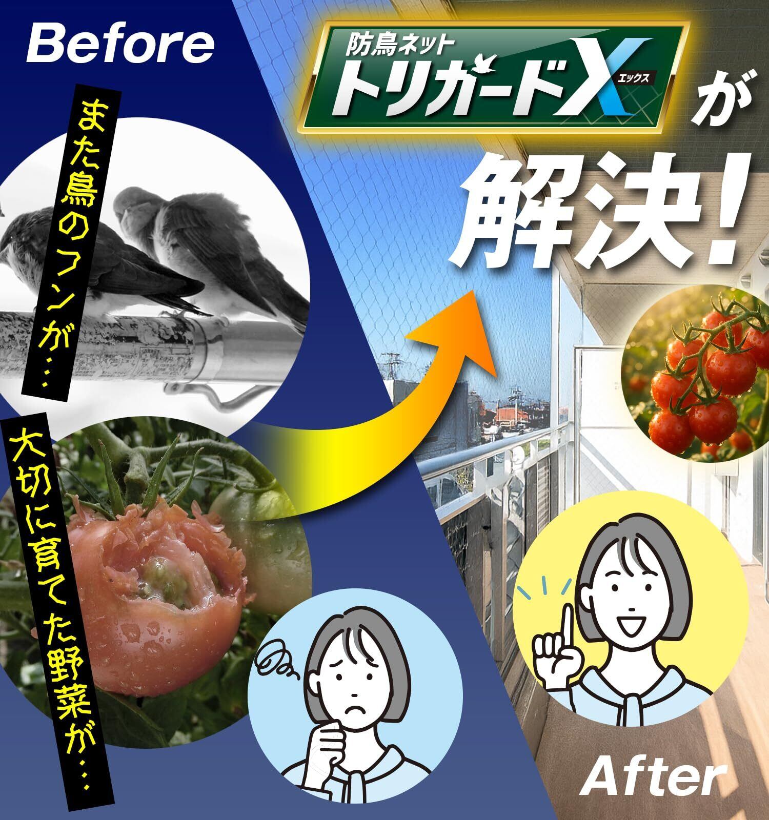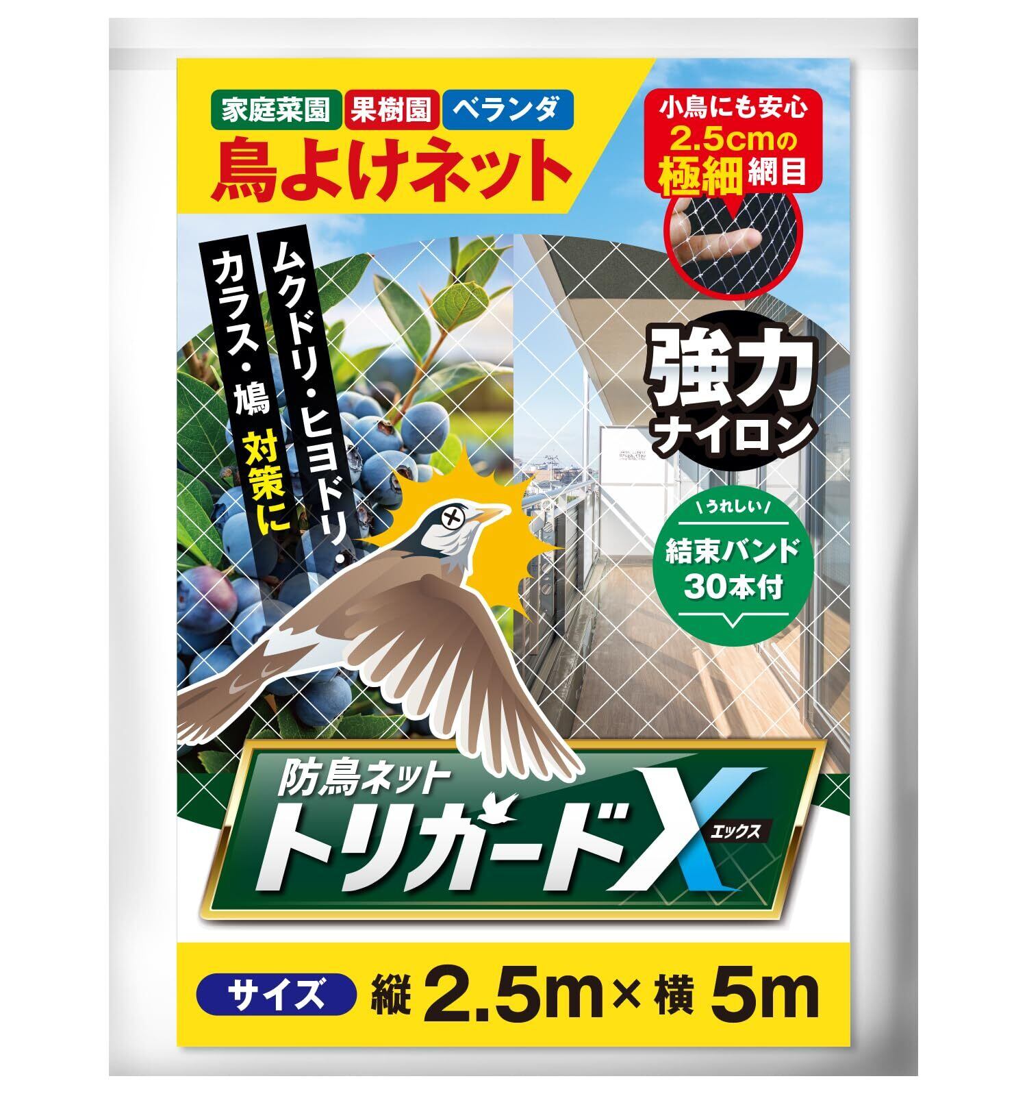 防鳥ネット トリガードX 透明 2.5m×5m 鳥よけネット ベランダ 鳩よけ 鳥避け 結束バンド30本付き UVカット 強力ナイロン 鳩 スズメ カラス 家庭菜園 果樹園 NYANDELMO