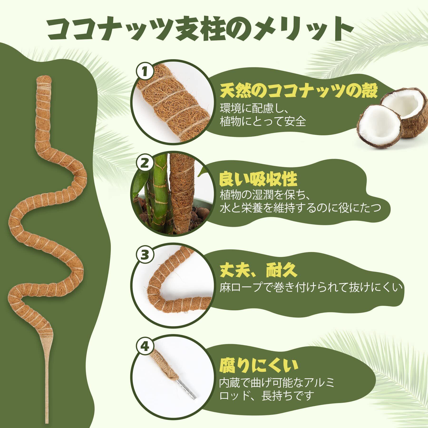 [耐久性が高い]ココナッツの繊維なので、腐りにくく、丈夫です。ココナッツ支柱の中はアルミロッドで植物に強力なサポートを与えられる、植物が拡大しても心配ではない、長い時間で使えます。