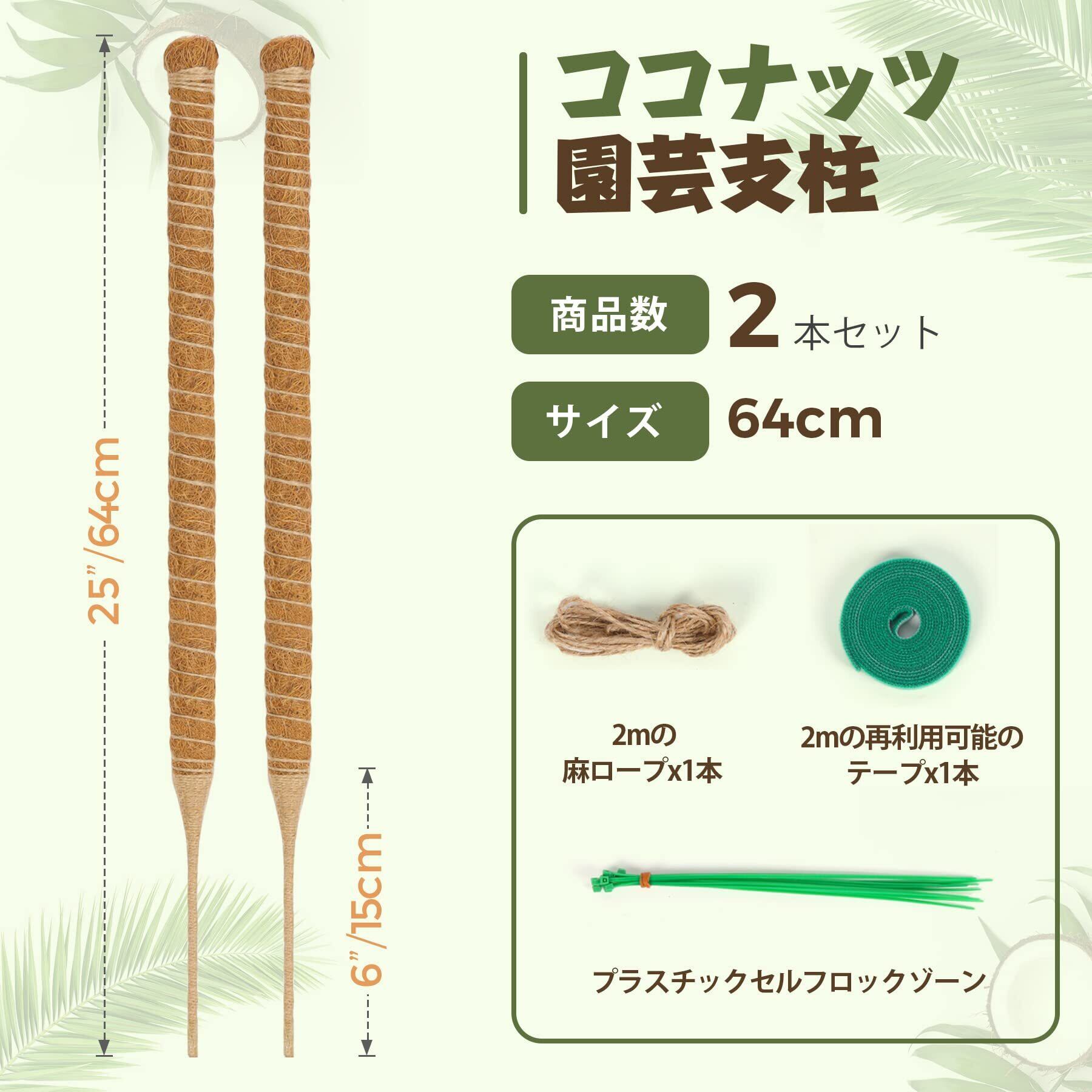 [商品情報]素材:ココナッツ、商品数:64CMのココナッツ支柱X2本、2M麻ロープX1本、2Mの再利用可能のテープx1本、プラスチックセルフロックゾン―ン。お知らせ:植物を含まれておりません。使用する前に、下のトレーがしっかりと取付られることを確認してください。