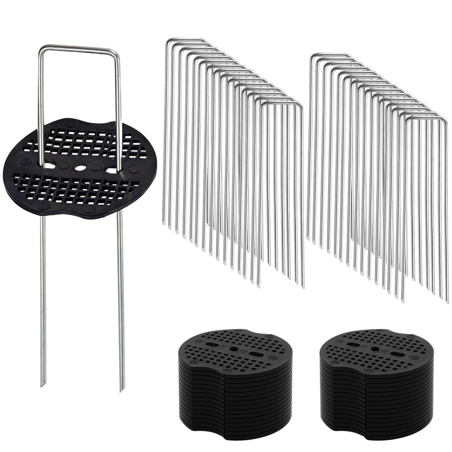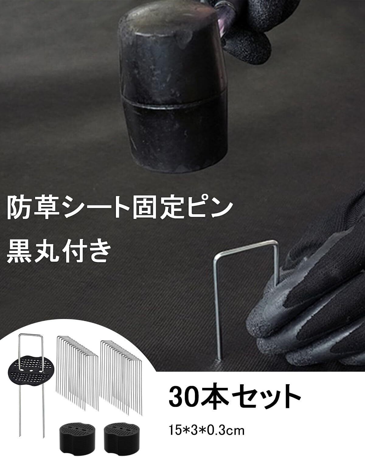 Yeeco 防草シート 固定ピン 30本セット Uピン杭 15cm 押さえピン 黒丸付き 人工芝 園芸用 農業用